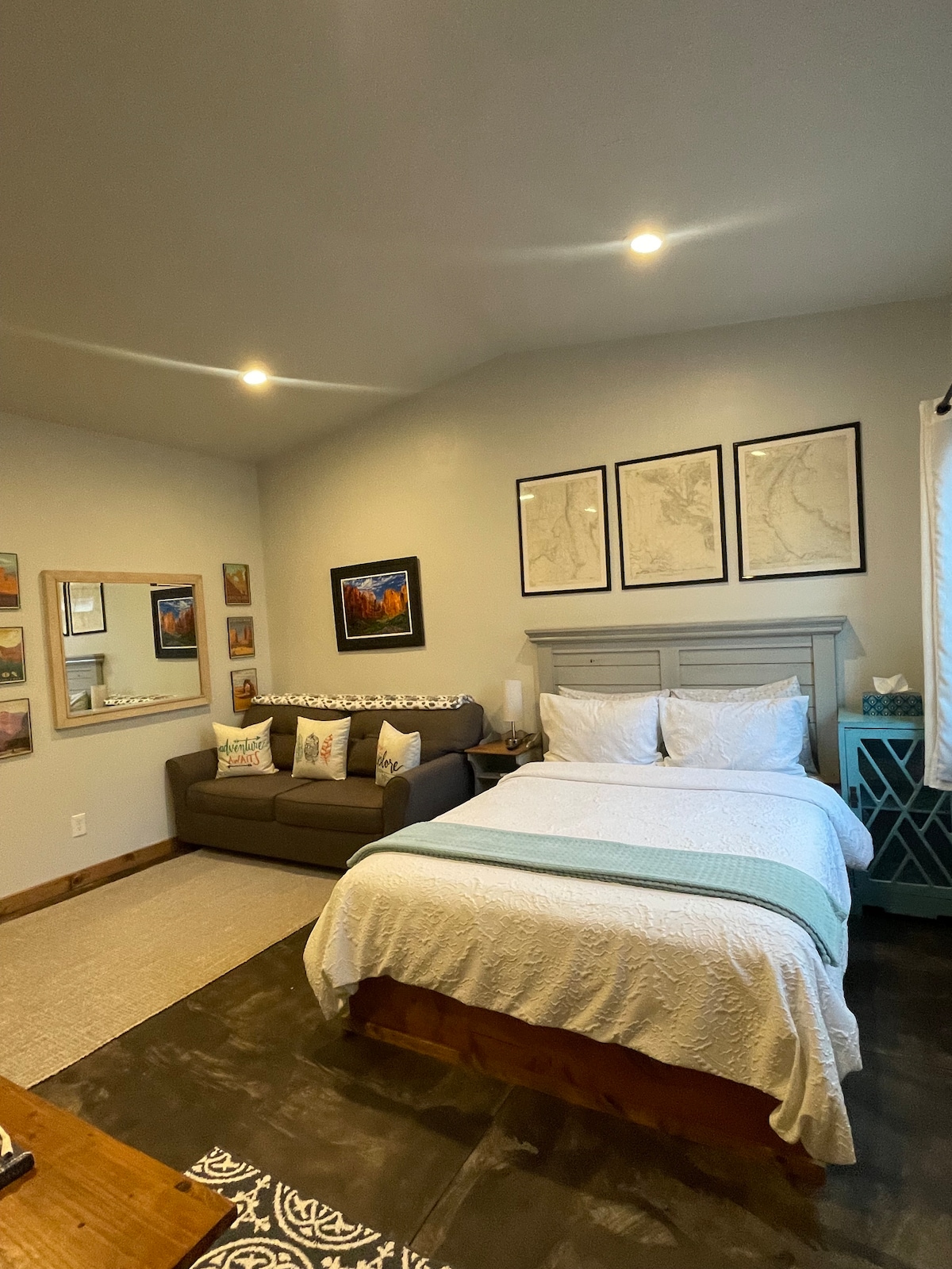 居心地が良くて広々としたこのプライベートスタジオには、クイーンベッド、遮光シェード、広いバスルーム、ユニット内のランドリー、フルキッチン、グリル、暖炉が備わっており、リラックスして自宅のようにくつろぐために必要なものがすべて揃っています! 路上無料駐車場、専用パティオ、キーレスエントリー。 すべてのエリアへの段差のないアクセス。 自然愛好家やアウトドアアドベンチャー好きに最適なロケーションです! このワンルームは、ザイオン国立公園とセントジョージまで30分です。 セントジョージから30分で、他のいくつかの国立公園や州立公園にも近いです。