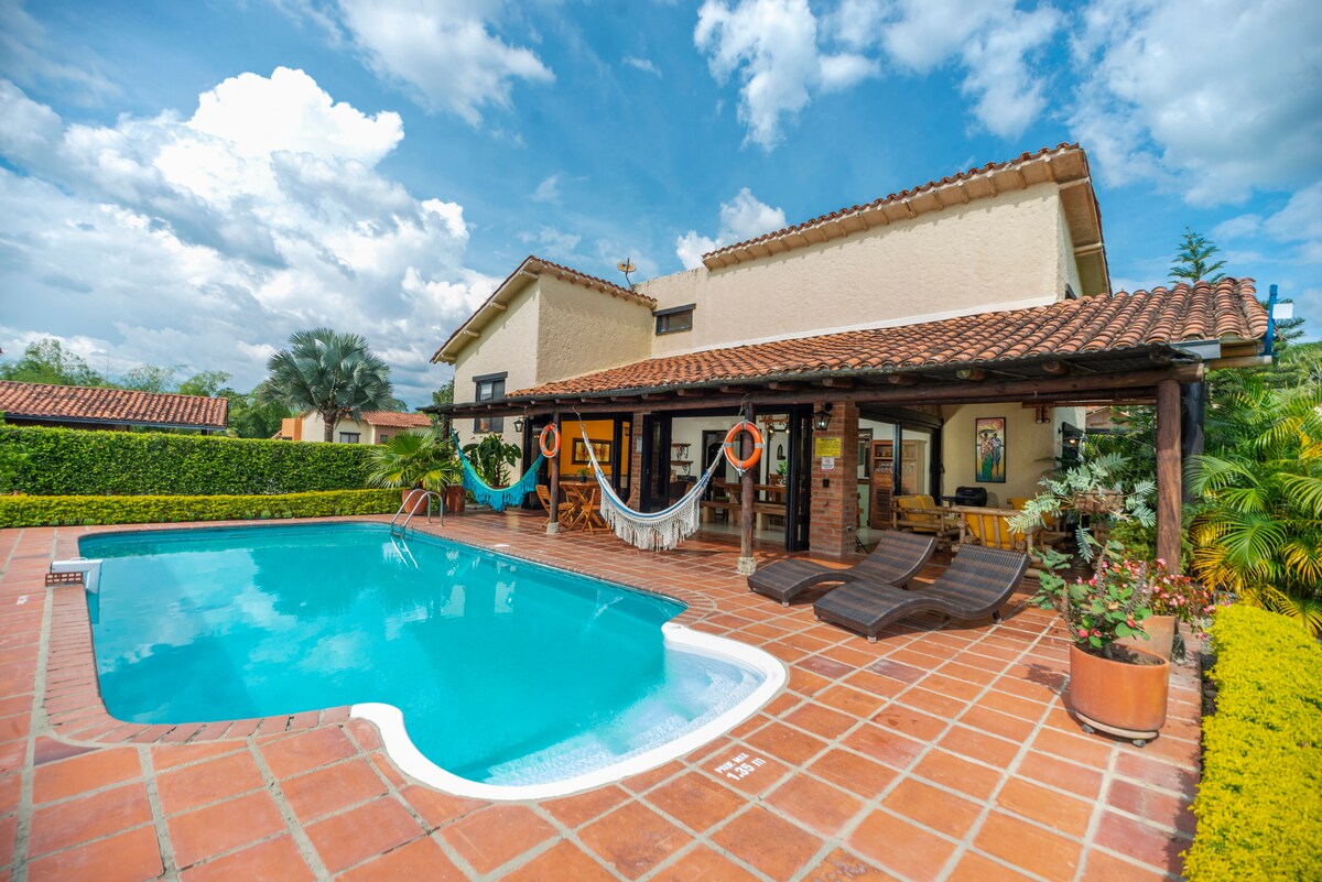 自然に囲まれた豪華な田舎の家をお楽しみください。静かな雰囲気で、家族やカップルに最適です。近くにレストラン、ショップ、サービス施設があり、街を離れることなく田舎の宿泊施設を体験できます。パナカ、パルケ・デル・カフェ、サレント、フィランディア、サンタ・ロサ・デ・カバルの温泉から1時間未満の戦略的なロケーション。テニスとパドルの複合施設に隣接しています。完全な快適さの中で、リラックスして、息抜きをして、エヘ・カフェテロを楽しむのに最適な場所です。