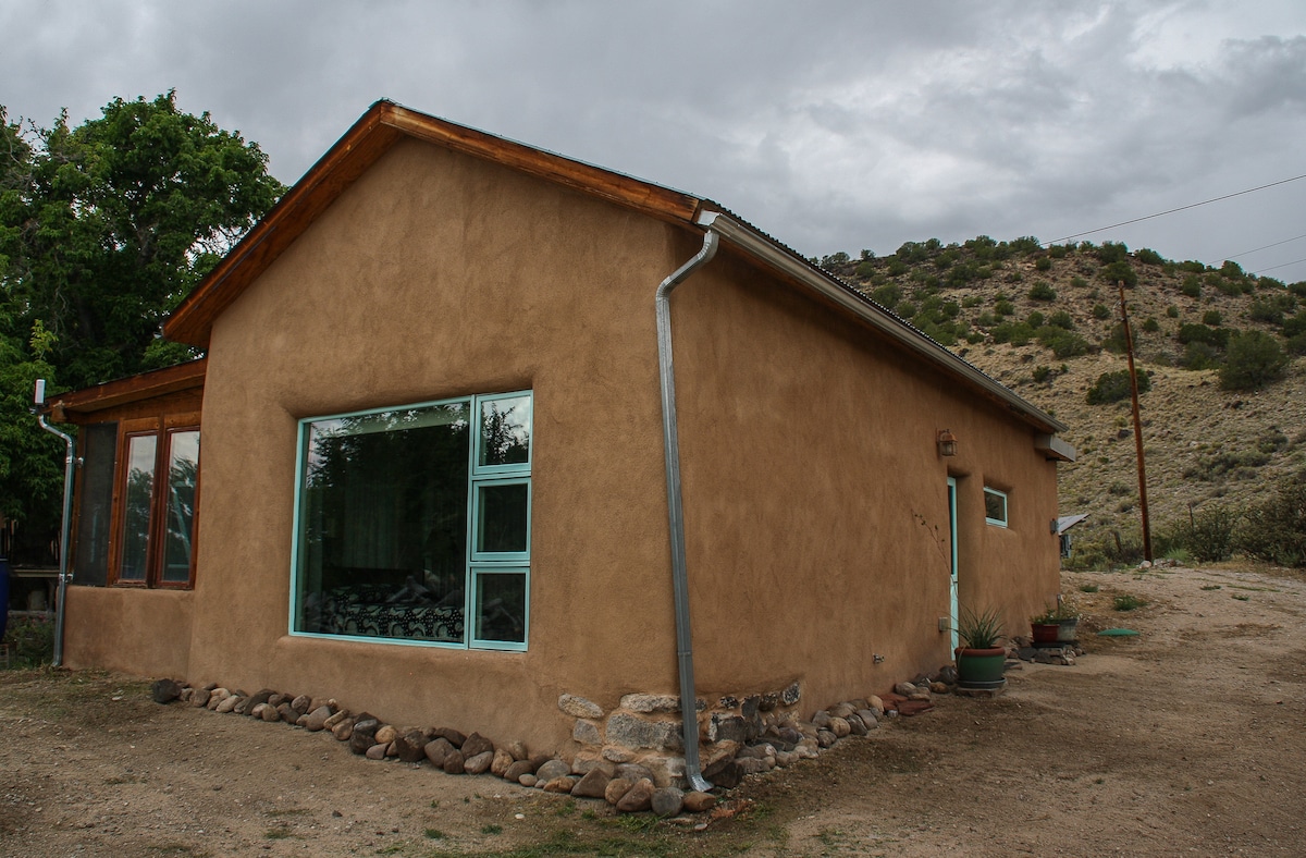 We welcome guests of all races, faiths, genders, sexual orientations, and countries of origin. Over a bridge and steps from the Embudo River, this stylish, well-equipped cottage is nestled under cottonwood trees in a private canyon facing a stunning rock face. Relax on the deck overlooking the water, and during late spring and early summer, listen to the river as you fall asleep. The quaint village of Dixon (an artist and vineyard, orchard, organic farm community) is just a mile away.