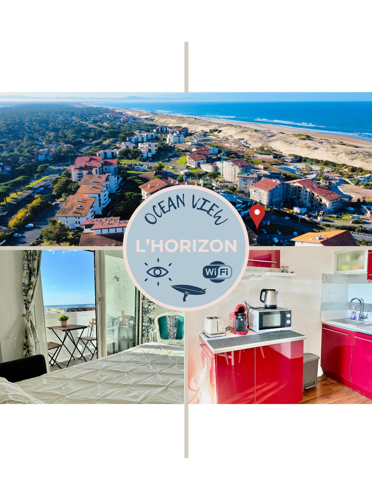 200%の自然 ノートルダム大聖堂のバルコニー付きスタジオホテル「フィート・イン・ザ・サンド」 リネン、調味料だけでなく、自転車2台=提供 海とピレネー山脈の素晴らしいパノラマビュー 「The Central Hossegor」とCapbreton港から2歩 すべての近くに滞在しながら、騒音から離れています(レストラン、バー、クラブ、アクティビティ、港、湖など) 彼の夕日を喜ばせるでしょう