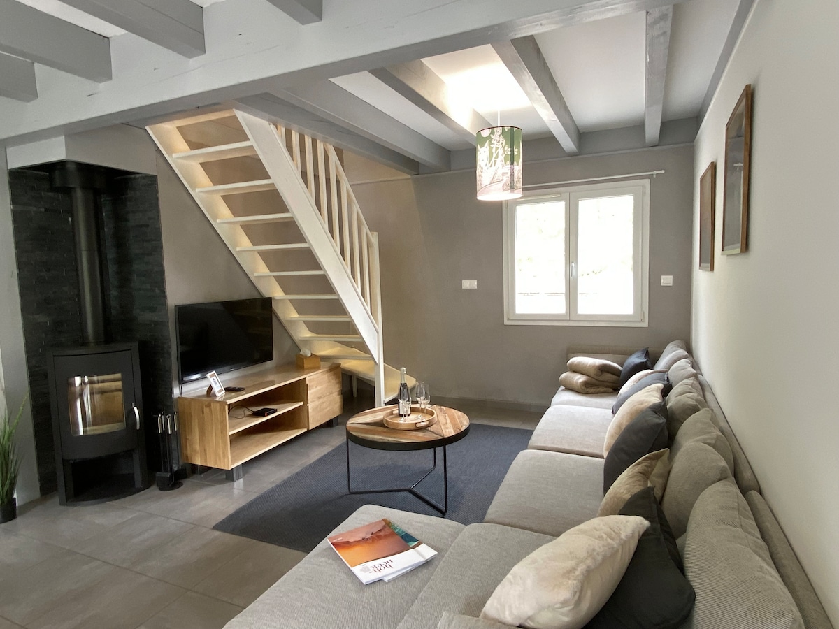 Le Cabanon cendré est une ancienne « baraque d'après-guerre » de 40 m2 (annexe de la maison principale) à laquelle nous avons souhaité redonner vie tout en conservant son authenticité. En hiver, détendez-vous face à la chaleur envoûtante du poêle à bois (salon cosy, ambiance cocooning) et pendant les beaux jours, profitez de la terrasse toute équipée. Le chalet se situe à 2 pas du centre-ville, proche de tout ce dont vous aurez besoin. Au plaisir de vous accueillir !