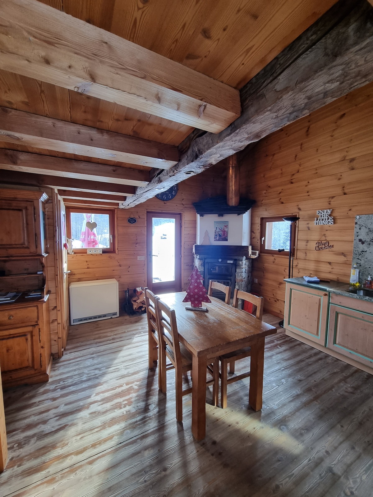 Alps Mountains. Italy. Aosta Valley. A cabin in a small village at 1600 meters,in the peace of meadows, grazing cows and mountains. Snow (usually) in the winter. A place of the heart, lovingly restored preserving the ancient beams of the roof. A wonderful view from the large windows and a special tranquility for those in search of peace, warmth and relaxation. The furniture is very nice: wood above all, but also more lively colors, and modern comforts. Quiet excursions, both on snowshoes or ski.