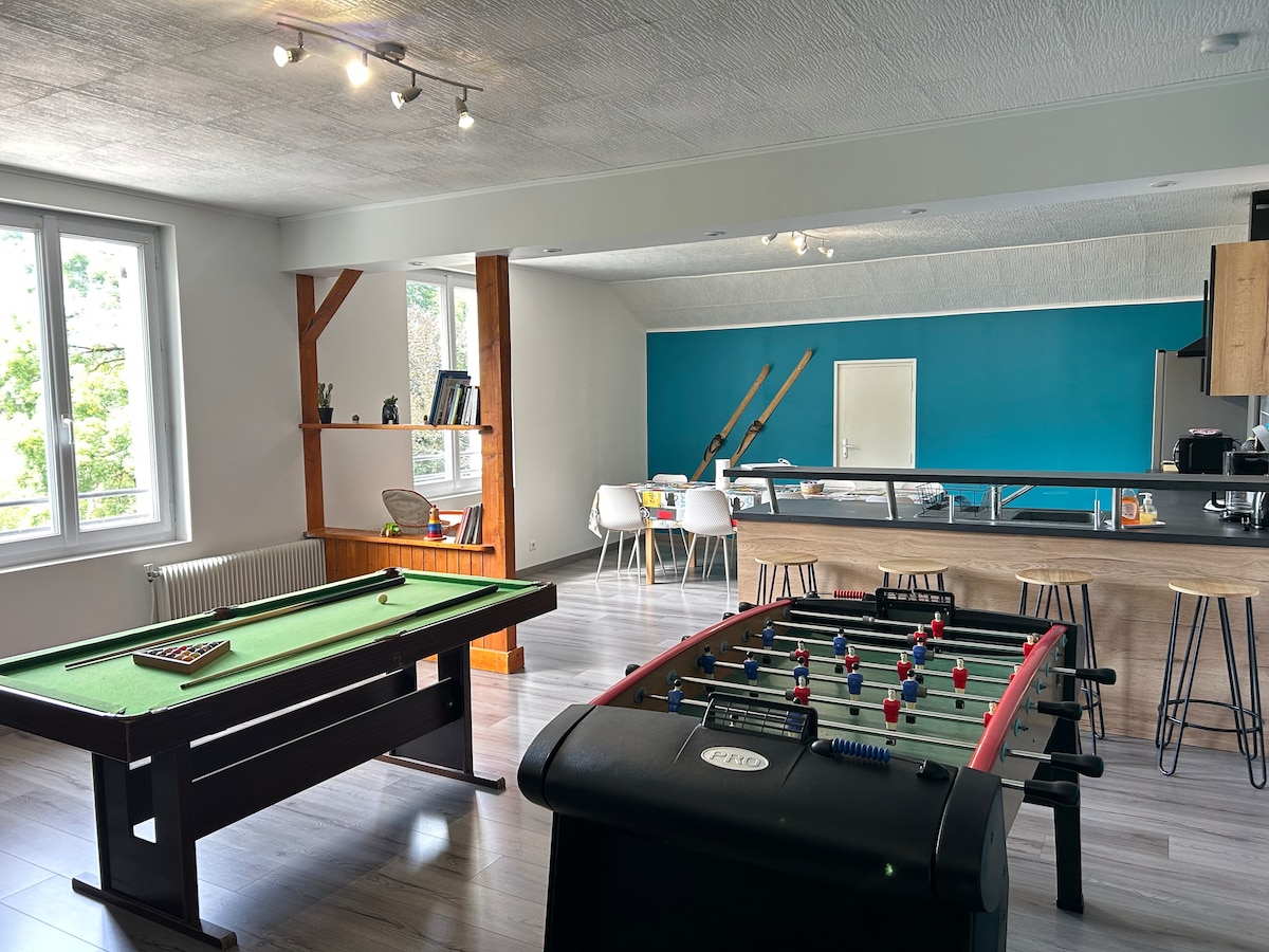 Pièces spacieuses, grandes hauteurs sous plafond (3.80m), belle lumière naturelle, construction pierres de taille et bois, mobilier ancien, équipements électroménagers complet neuf, chauffage central + poêle à bois. environnement isolé, naturel et calme. proche des commerces (6km orgelet et 10km LONS LE SAUNIER). Proximité de nombreux attraits touristiques. idéal pour départ des randos, ouvert toute l'année, location minimum 2 nuits, week-end ou semaine. 5 couchages (1 chambre+1convertible).