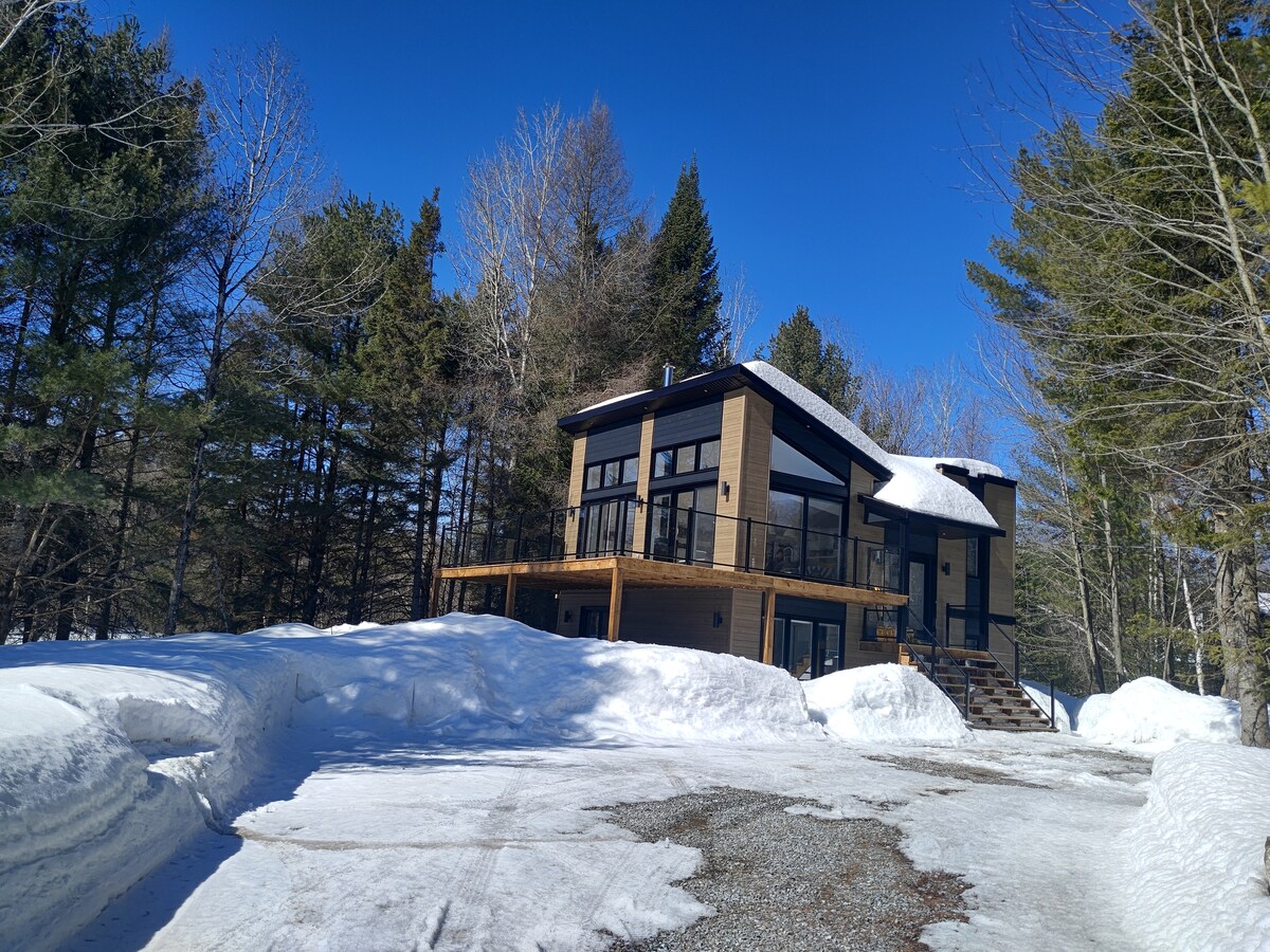 For your vacations choose the Chalet Horizon, an Eden in nature with a view of the mountains ♥ You will appreciate the chalet thanks to: ✷ Semi-private beach 5 minutes away ✷ Large private land, totally surrounded in pure nature ✷ Large bright windows with a view of the horizon ✷ Luxurious and comfortable spaces ✷ Spa open all year round ✷ Terrace equipped with a BBQ and gas fireplace ✷ Smart TV with speakers ✷ Indoor cozy gas fireplace ✷ Foosball table ✷ Wine bar
