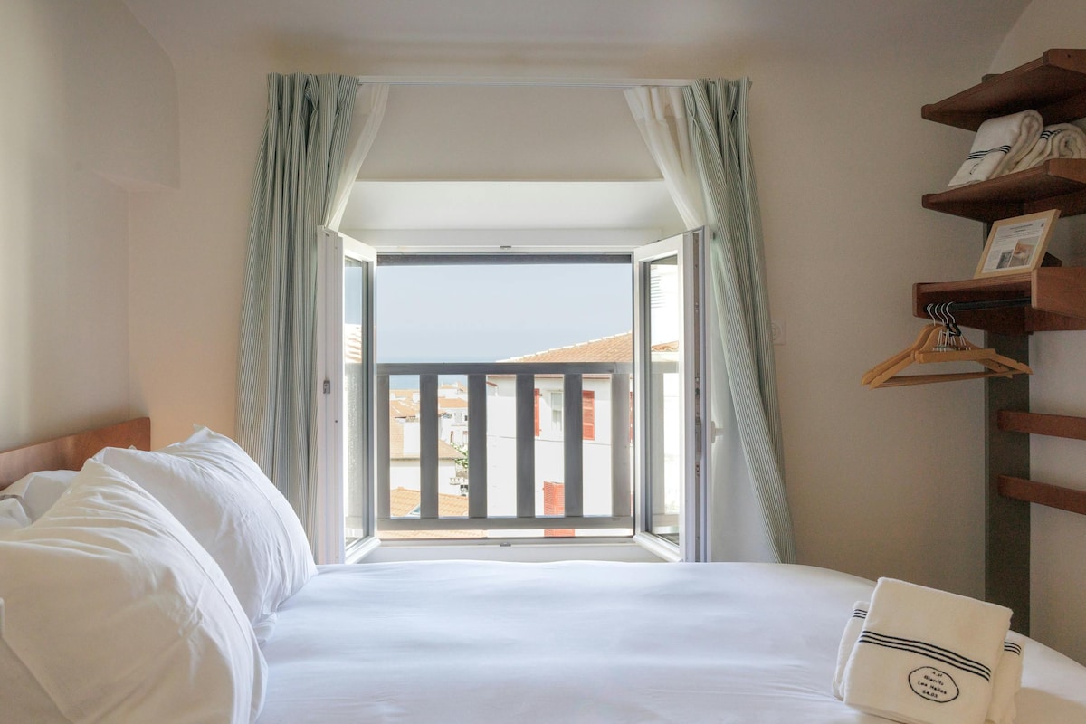 こんにちは、 山と森の景色を一望できるアングレットの静かなアパートでお迎えします。 ジェットシャワーとトイレが分かれたシャワールームを共有する2つの部屋を貸し出しています。 1つは140cmのベッド1台、もう1つは90cmのベッド2台で、180cmにすることができます。両方ともに、シーツ、タオル、食器、やかん、Senseoマシン、冷蔵庫、電子レンジ、Wi-Fiが利用可能です。公園やレジデンスの自転車保管場所にアクセスできます。