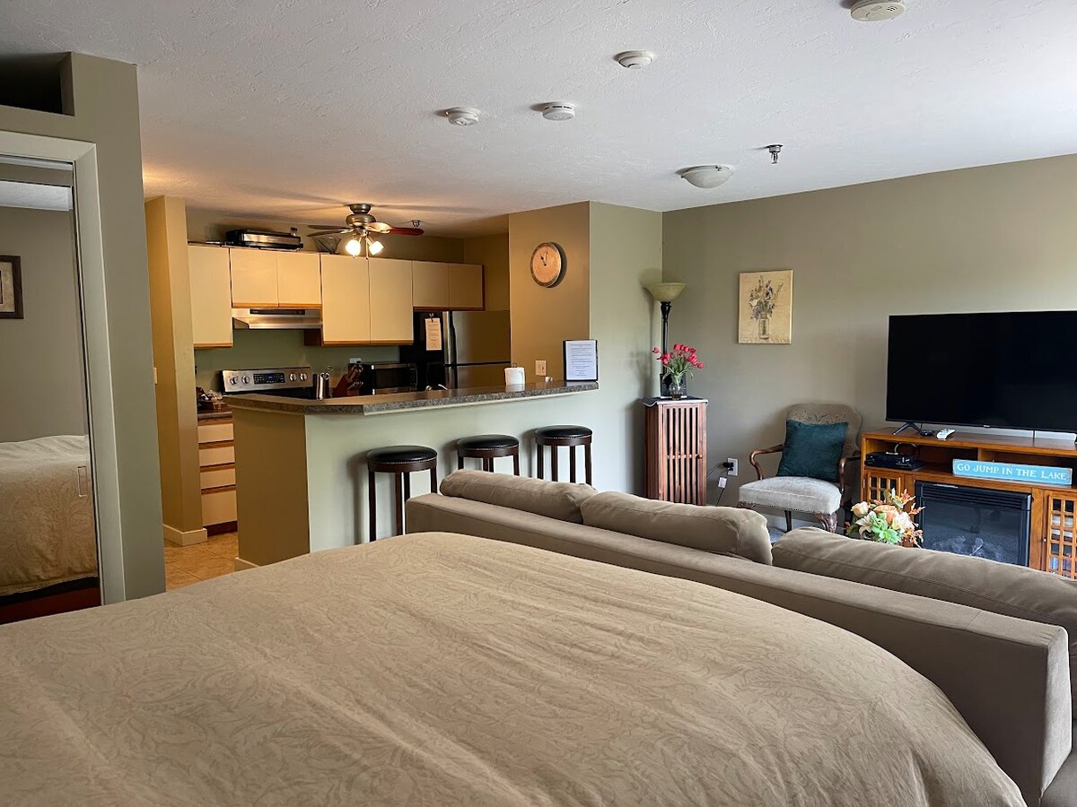 この最上階のコーナーユニットは、平和なオアシスです。 エレベーターでプライベートスタジオアパートまですぐに行けます。 どの季節でも息をのむような景色が楽しめます。ニューイングランドの紅葉を見に行きましょう。冬はガンストックの近くでスキーを楽しみ、夏はウィアーズビーチまでの(丘陵のある!)散歩をお楽しみください。 レイクス地域の中心部にあり、すべてのアトラクション、ショッピング、レストランに近いです!ウィアーズビーチに近く、ニューハンプシャー州立銀行パビリオン/メドウブルックコンサート会場まで4マイル、ガンストックマウンテンまで8マイルです。