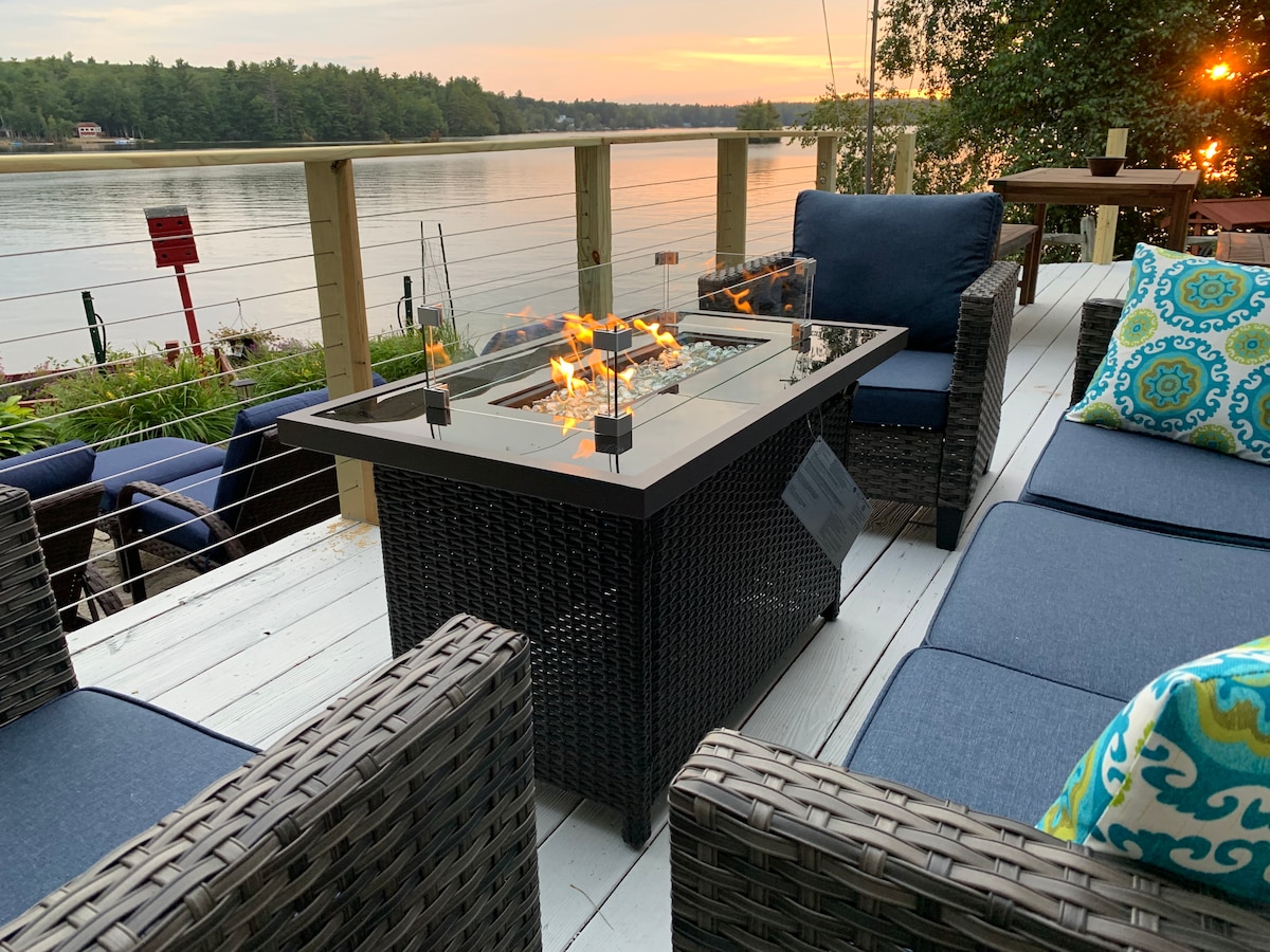 ニューハンプシャー州メレディスのペットOKのカスタム丸太ハウス、ファイヤーピット付き