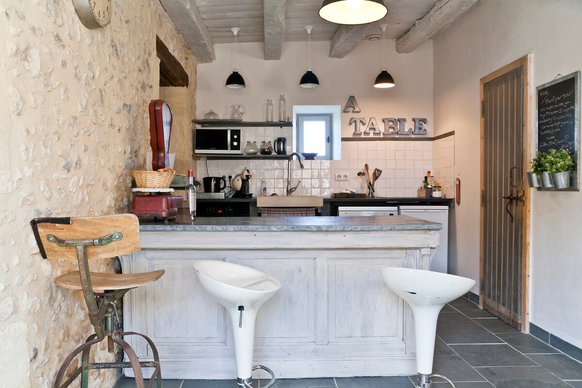 ジャックとベアトリスの物件の片隅にある、静かで日陰のあるこの小さな宿泊施設でリラックスしてください。小さなプライベートガーデンの下にある葉のパラソル、テラス、屋外サマーキッチン、そしてあなた専用のプランチャがあります。また、サンラウンジャーでリラックスして日光を楽しむことができる、完全に日当たりの良いプールもご利用いただけます。ベアトリスとジャッキーが夢のアトリエにあなたを温かくお迎えします 😉