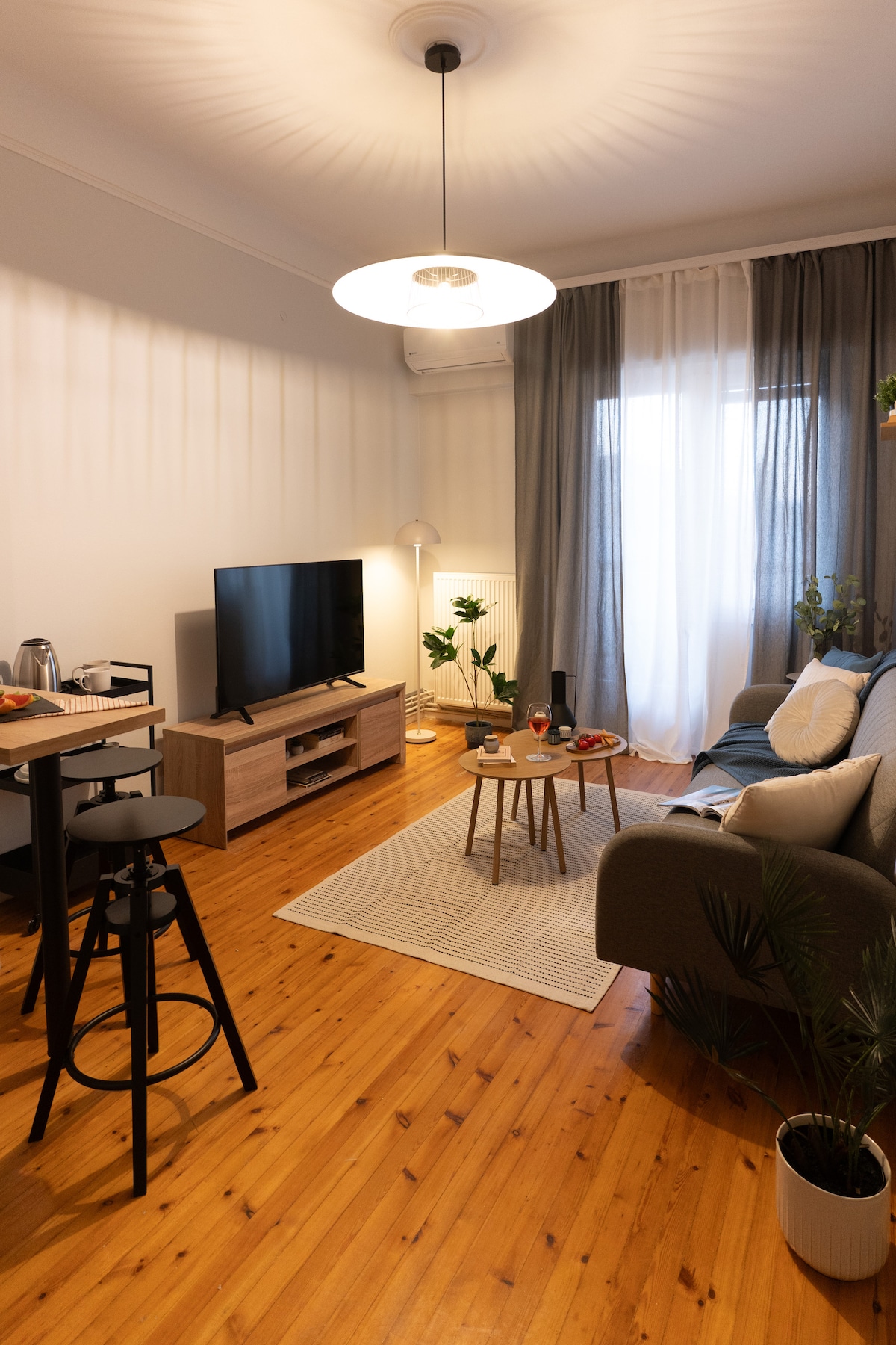 明るく風通しの良い、天井の高い65㎡のアパートメントで、ゆったりとおくつろぎください。アリストテレス広場に隣接し、市内中心部にある静かな3つの空間で、至福のひとときをお過ごしください。 港、美術館、レストラン、コーヒーショップ、スーパーマーケットも徒歩圏内です。 光ファイバーによる100Mbpsの高速Wi-Fiもご利用いただけます。 2台のエアコンがアパートメント全体を暖かく包み込み、市内観光の一日の終わりにリラックスできるアットホームな雰囲気を演出します。