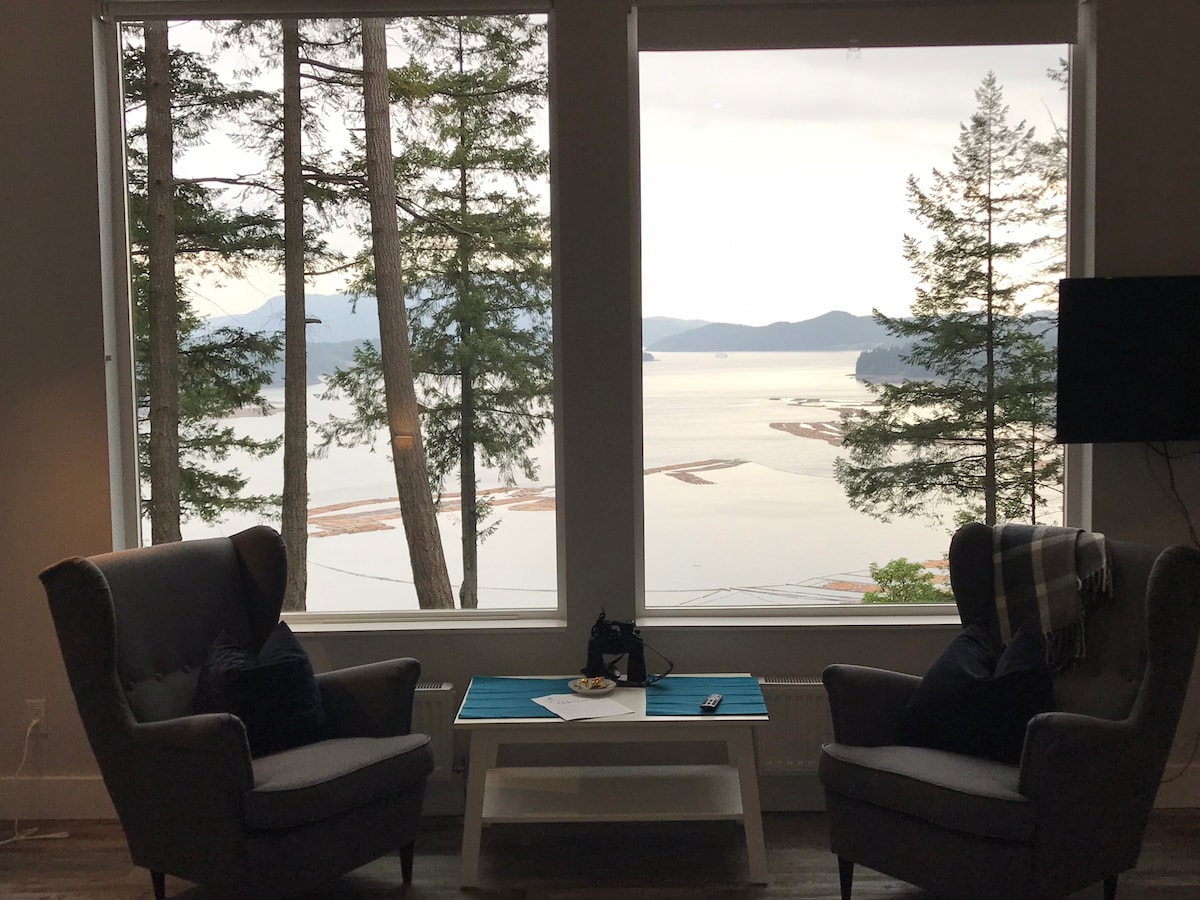 Come stay in our new lovely above ground basement suite. We live above with our 3 young kids and noise should be expected between 8am-11pm. This probably isn't for you if you're looking for a serene, romantic getaway. It's comfortable, A/C, has a fabulous view, is centrally located for island adventures. Nestled in gorgeous hillside, space for outdoor gear, kitchen with induction cooktop, private laundry, Wifi etc. Adjacent to another AirBNB suite and not suitable for kids. Hope to see you soon!
