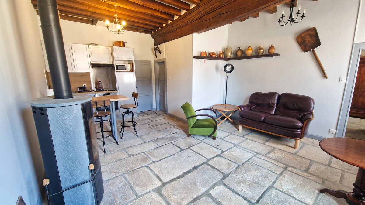 A country house next to ours in a calm and peacefull situation surrended by nature. An independante entry with a private garden fully enclosed and a place to park your car. Once inside, you enter in the saloon with a fully equiped opened kitchen. You'll get a bedroom with a two people's bed, a bathroom with a bathtube and toilets. To finish, a mezzanine with a two people's bed a a desk corner. English TV available.