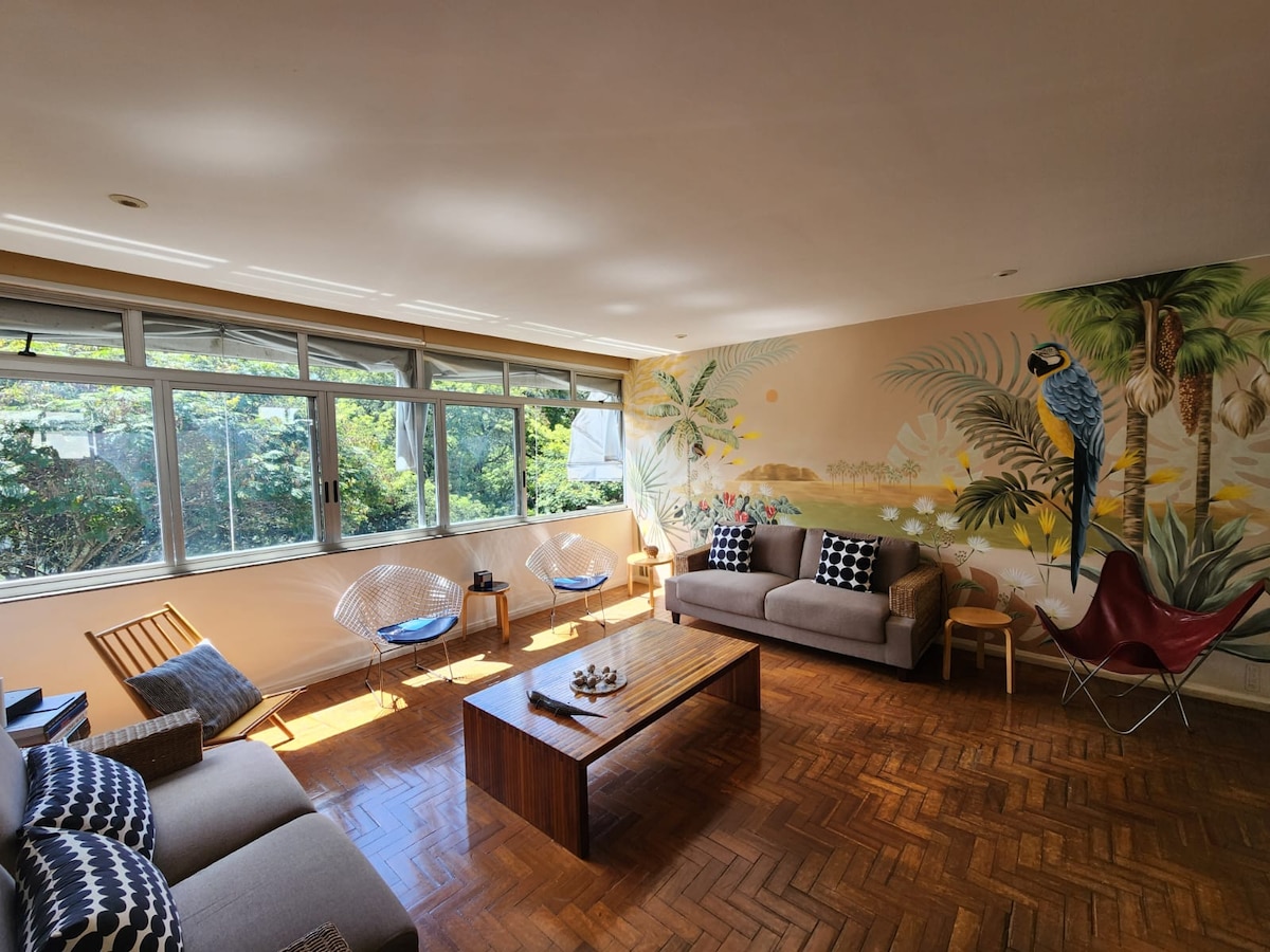この静かでスタイリッシュな空間でリラックスしてください。 メインハウスの側面にある独立したエントランス、囲まれたコンドミニアム内の安全な駐車場。 とても居心地が良く、目の前には緑豊かな森があります(緑が多く、空気が新鮮です)。 この空間が「Canto do Sabiá」と呼ばれる理由を見つけに来てください。 寝室(ダブルベッド、ワードローブ、テレビ)、リビングルーム(ソファベッドとエアコン)、キッチン(オーブンと電気コンロ、電子レンジ、冷蔵庫を完備)、バスルーム、すべてが一体型で、とても愛情を込めて装飾されています。