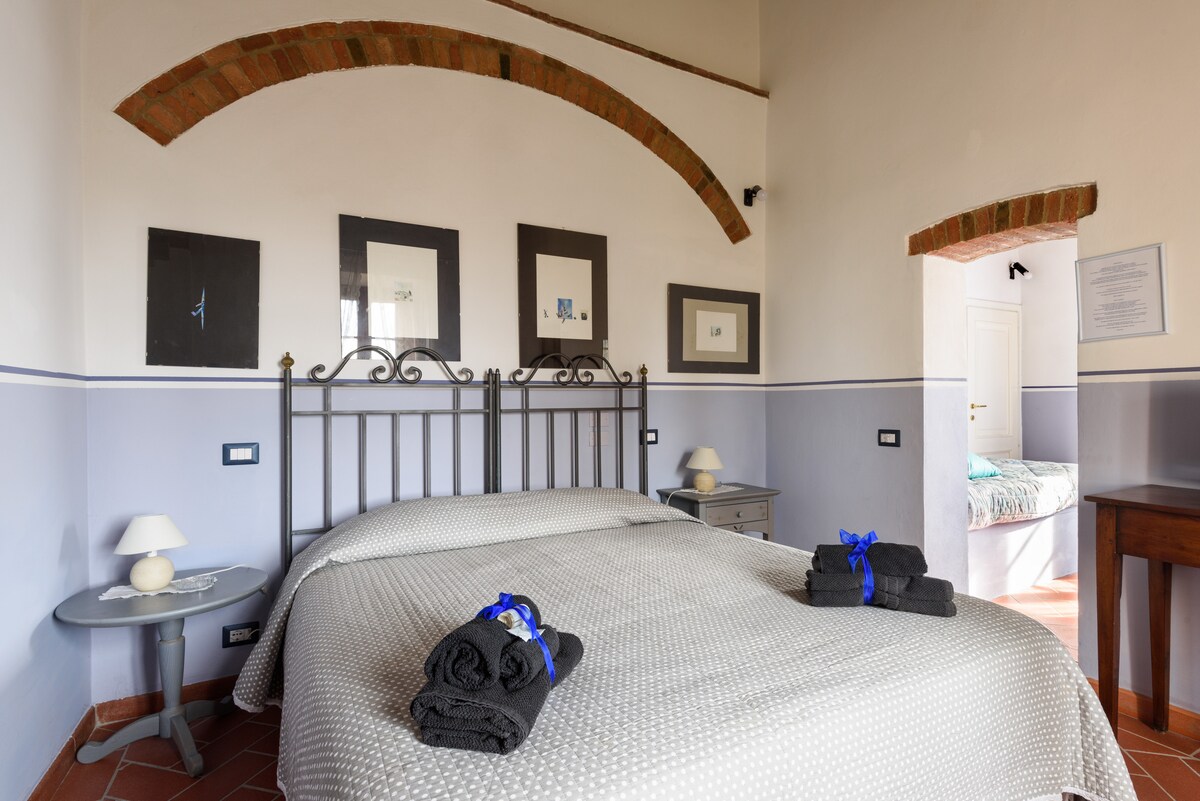 18世紀の美しい農家の中に位置するこのアパートメントからは、プールとトラジメーノの丘陵地帯の息をのむような眺めが楽しめます。 ゲストは、快適なダブルベッドルーム、ソファーベッド付きリビングルーム、パノラマを眺めることができる大きな窓、設備の整ったキッチン、広々としたバスルームをご利用いただけます。 さらに、アパートメントからは、小さな専用庭園へのアクセスが可能で、夏の暑い日に湖の景色を楽しむのに最適です。