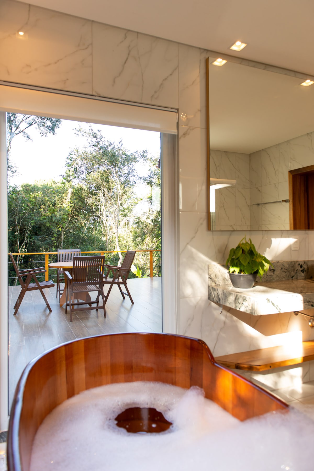 自然に囲まれたバスタブ付きの隠れ家
