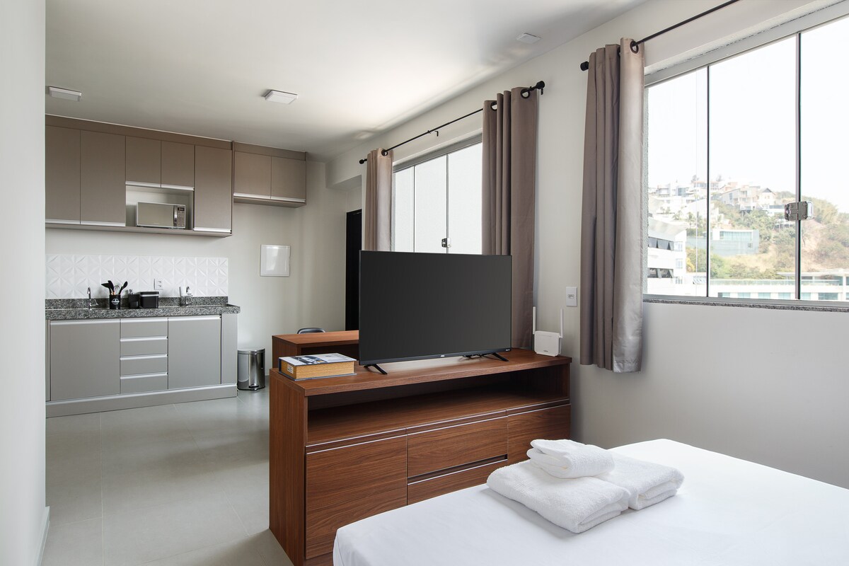 この美しく、便利な立地の宿泊施設では、必要なものすべてに簡単にアクセスできます。 フラット/エアコン/ Wi - Fi/スマートテレビ/屋根付きガレージ。 家具一式、アメニティ。 BR 040、Av.など、BH地域へのアクセスが簡単です。Raja Gabáglia、Barão Homem de Melo通り、ノッサ・セニョーラ・ド・カルモ通りなど。 ビジネスや観光に最適です。 夕日を眺めることができます。 24時間対応の受付で、チェックインが簡単です。 近隣にはドラガリア・アラウジョ、ヴェルデマール・スーパーマーケットとベーカリー、セルフサービスレストランなどがあります。