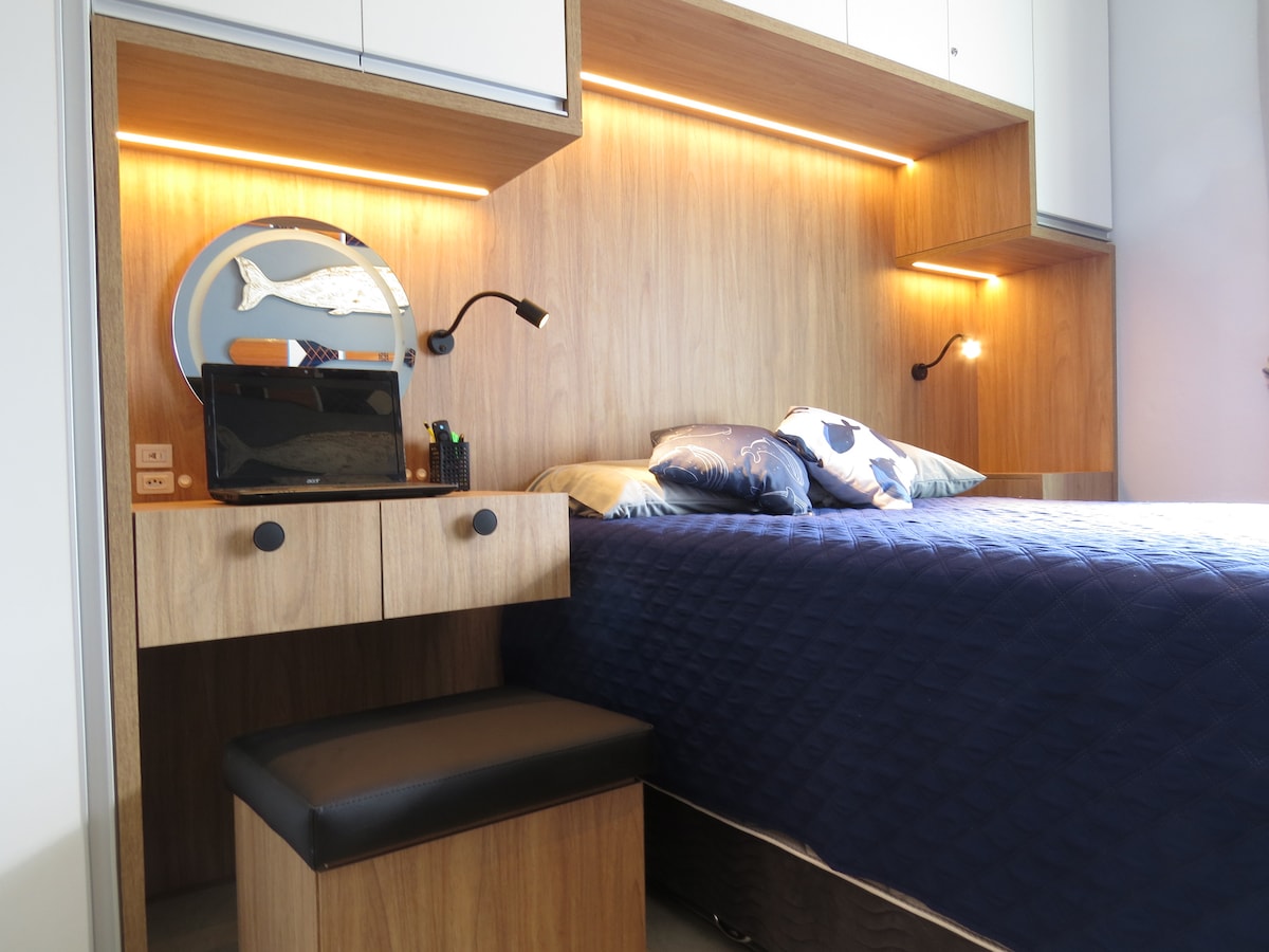 Loft Casa no Farolは、細部にまでこだわって設計されており、高品質な海に面した休息の場をお探しの方に最適です。 ロフトには、設備の整ったキッチンと、一体型のダブルボックスベッドがあります。中二階には快適で魅力的なダブルマットレスがあります 思い出に残る日々を過ごすための静かで美しい場所をお探しの方に最適です。 デッキからの眺めは素晴らしいです! ファイバーWi-Fi 300MB エアコン 中2階にファン