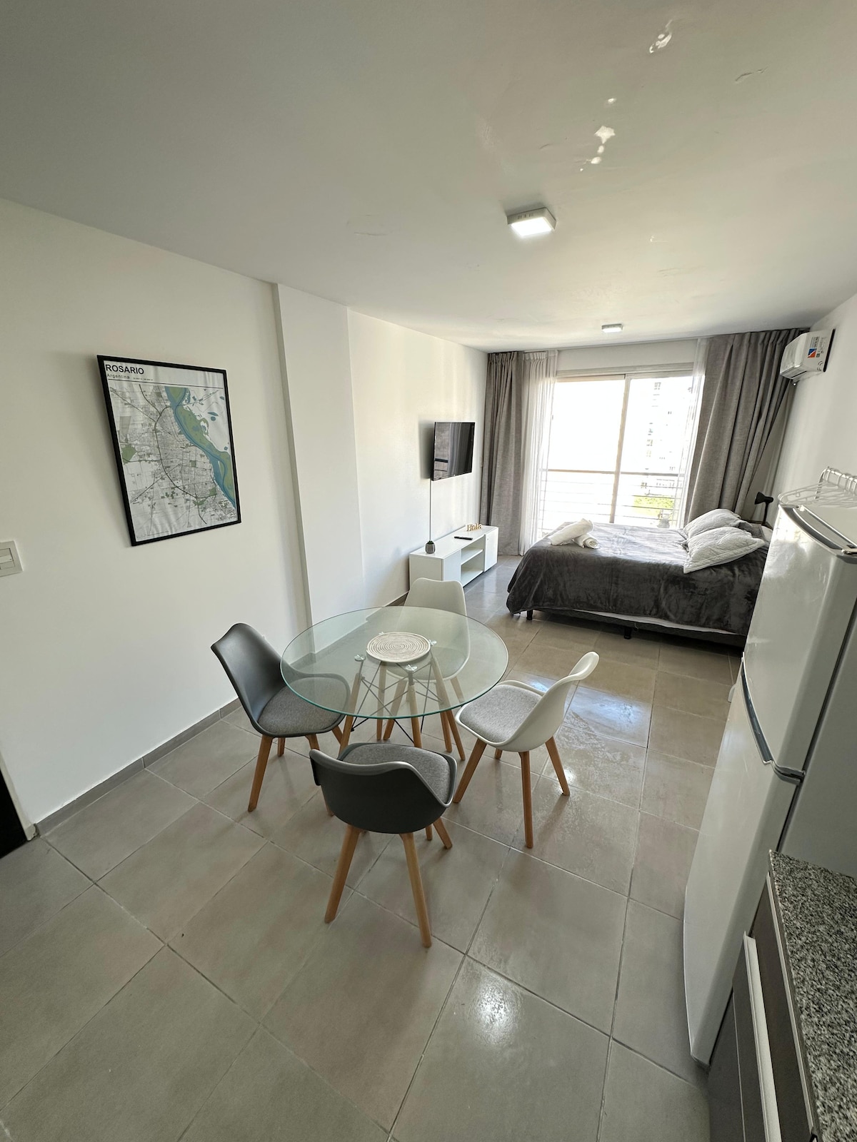 Unidad para 4 pers. con 3 camas , una cama matrimonial + dos camas individuales, todas las comodidades , exc. ubicacion a 2 cuadras de av.pellegrini , cerca del centro de Rosario y del monumento a la Bandera , a 2 cuadras de la plaza libertad y a 2 cuadras de la plaza Lopez, bares y mercados en la zona , zona segura , estacionamiento gratuito en la puerta , tv full flow netflix , internet fibra optica , aire acondicionado frio/calor , cocina a gas , doble balcon , living. Ideal para descansar