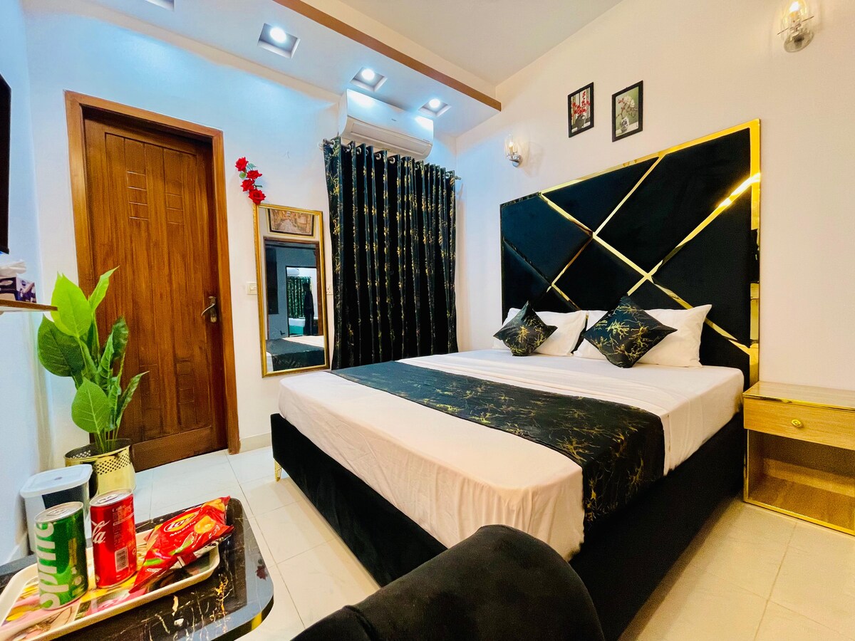 Airbnbでの予約後、身分証明書/パスポートが必要となり、滞在中にセキュリティ上の理由で提出を求められる場合があります。 -Wi-Fi -A.C/Heating お湯が出る付属のバスルーム - 共用キッチンとラウンジ。 フルキングサイズのベッド、ミニ冷蔵庫、食器棚。 スマートテレビ マットレスは1枚500パキスタンルピーで別途料金がかかります(マットレス3枚は無料) リスティング内は禁煙です パキスタンの現地の法律により、夫婦のみ許可されています(証明書類が必要です) 許可された訪問者のみ許可されます