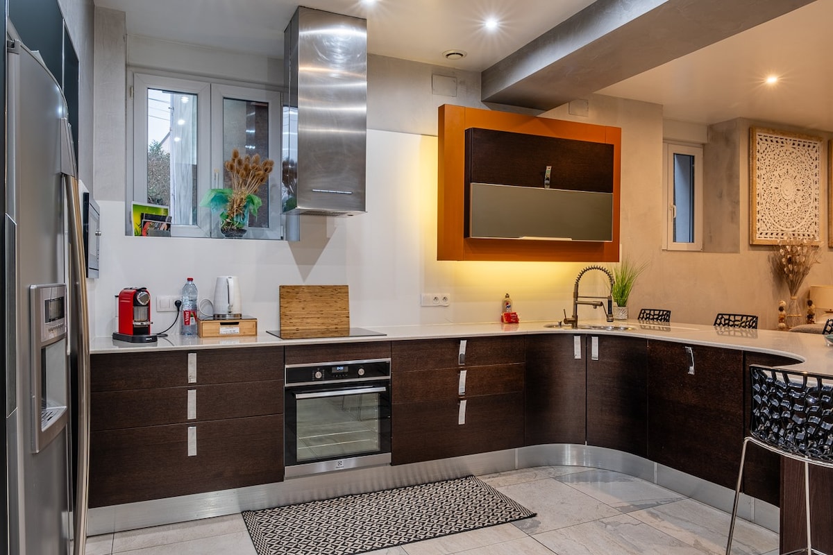このモダンで温かみのある150平方メートルのデュプレックスマンションは、邸宅の1階にあります。市内中心部とクリスマスマーケットから15分の場所にあり、最大3台の車を収容できるゲートで保護された中庭を備えています。設備の整ったキッチンと2つのバスルームを備えたこの美しく明るいアパートで、ストラスブールでの快適な滞在をお楽しみください。 私たちは世界最大の遊園地「ユーロッパパーク」から車で30分です