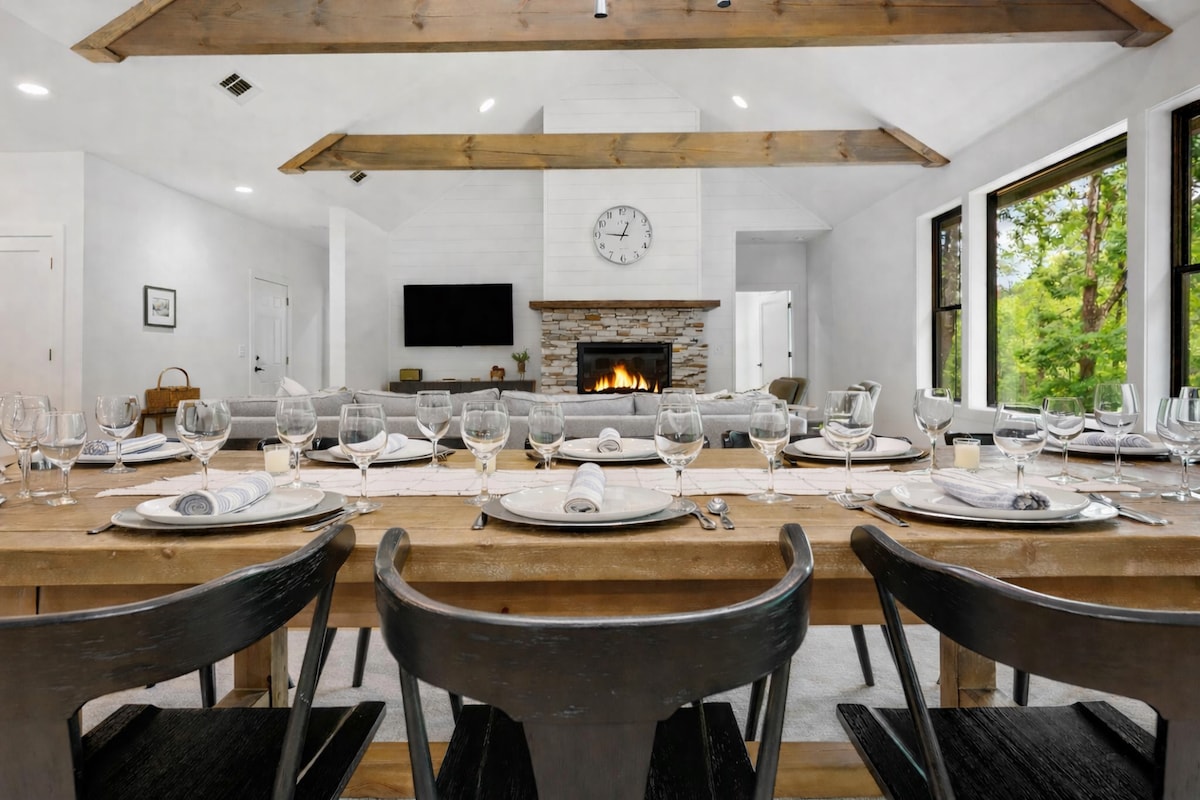 家族や友人と一緒に、プライバシーが確保された広々とした設備の整った湖畔の別荘で、忘れられない湖畔の休暇を過ごしましょう。グループで、提供されているカヤックやパドルボードを使って、釣りや水泳などを楽しみながら、ドックで素晴らしい時間を過ごすことができます。ボートを持ってきたり、レンタルしたりできます。湖畔の隠れたポーチや、屋内外にある複数の集まりの場でリラックスしましょう。ゲームルームで映画を見たり、フーズボールをしたりするのは、子どもも大人も大好きです。ビーチサイドまたは石の焚き火台のどちらかを選んで、思い出を作りましょう。