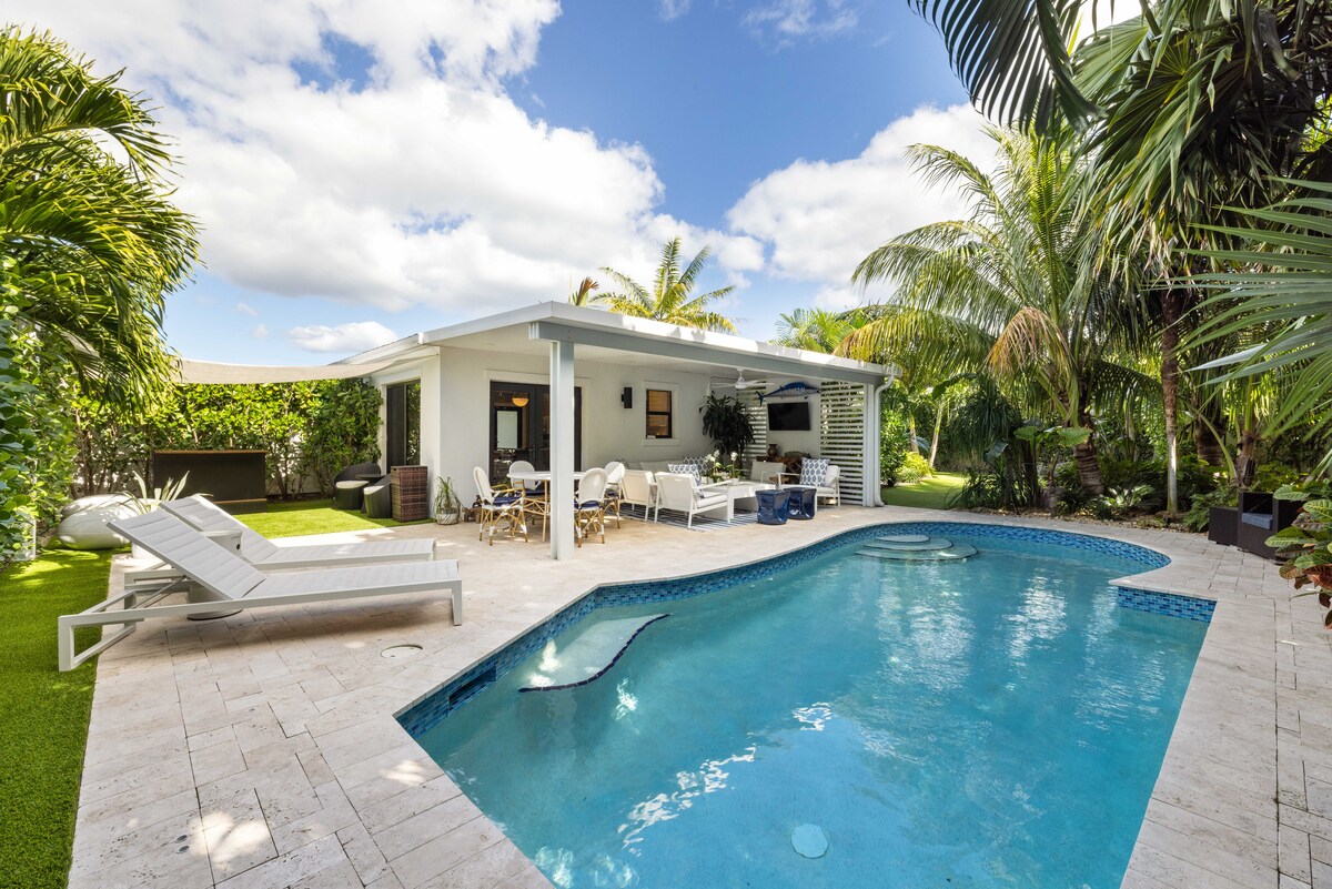 パームビーチの中心部に位置するアッシュ・プールハウスの静けさを体験してください。 この4寝室3バスルームのファミリー向けの家はI-95からわずか数ブロックのところにあり、美しいビーチ、ショッピング、トップクラスのゴルフコース、活気あるナイトライフに簡単にアクセスできます。 きらめく温水プールとさまざまなゲームがあり、子どもも大人も一生の思い出を作るのに最適です。 リラックスできる休暇を始めましょう。今すぐ晴れた場所を予約しましょう!