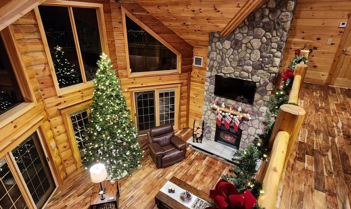 レビュー53件、5つ星中4.98つ星の平均評価屋外サウナ付きレイクリッジバンガロー