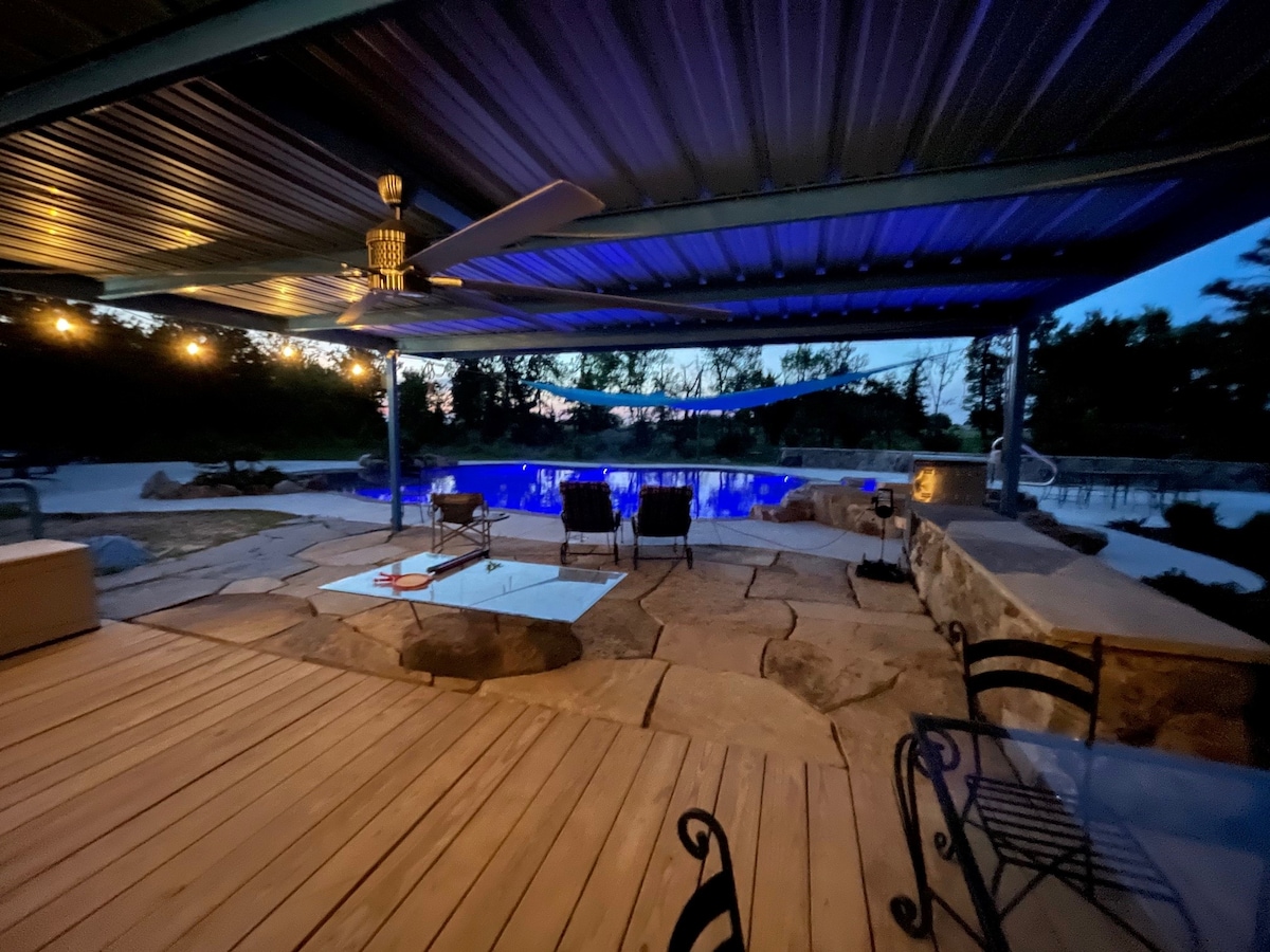 Quitman Lakefrontの釣り用ドックと焚き火台