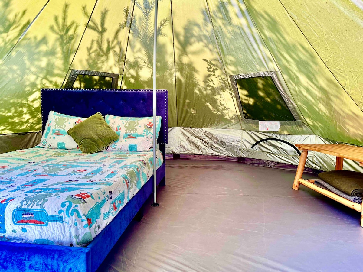 レビュー10件、5つ星中5つ星の平均評価It’s Not Easy Being Green Yurt @ Camp Squid!