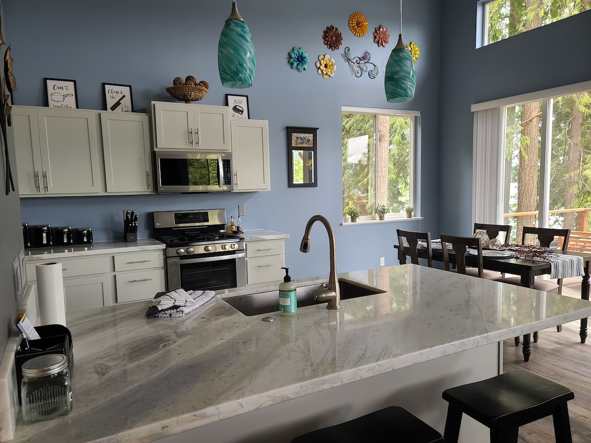 ペンド・オレイル湖とシュヴァイツァー・マウンテンの素晴らしい景色を楽しめる、風光明媚な隠れ家へと逃避しましょう。このモダンな2寝室の宿泊施設には、広々としたデッキ、専用のジャグジー、フルキッチンが備わっています。ピックルボールや卓球などのガレージゲームに加えて、近隣のレストラン、ボート、水泳、ハイキング、サイクリングもお楽しみください。くつろぎの休暇に最適なこの快適なお家は、高速Wi-Fiとエアコンを備えており、一年中快適な滞在、素晴らしい眺め、楽しい時間をお楽しみいただけます!*メインのゲストは24歳以上でなければなりません。また、予約を確定する前に有効な身分証明書の提示が必要です。*