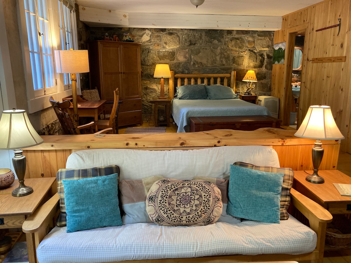 追加料金はありません!ニューヨーク州の趣ある小さなエリザベスタウンで、アディロンダックの小川の音と景色に目覚めましょう。 建物は私たちの裏庭にあり、内部は約10 x 12で、クイーンサイズのベッド、ドレッサー、ミニ冷蔵庫、コーヒーメーカー、コンセント、屋内とオープンポーチの照明、テレビ、暖房/ファンがあります。 モーニングコーヒーを楽しんだり、暖炉のそばで本を読んだりしてください。 クイーンサイズベッド用のリネンとタオルはご自身でご持参ください。 屋内用の毛布は用意しています。 シャワーとトイレは共用です