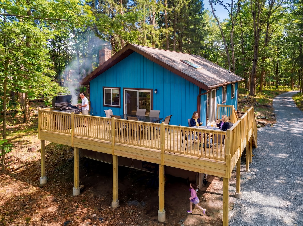 こちらの静かな森の中の2エーカーの広大な敷地にある、心安らぐ宿泊先に滞在して、自然の中でリラックスしましょう。 ベッド2台、バスルーム1室のキャビンは最大8名様まで宿泊可能です。 広々としたリビングルームと広々としたキッチンスペースで、グループのおもてなしを簡単にします。 バーベキューナイト用のグリルを備えた屋外デッキ。 屋根付きの玄関ポーチは、宿泊施設を通り過ぎる野生動物を観察するのに最適です。 焚き火の横でくつろぎ、もっと楽しみましょう! ここに滞在すると、ポコノスの魅力をすべて楽しむことができます!