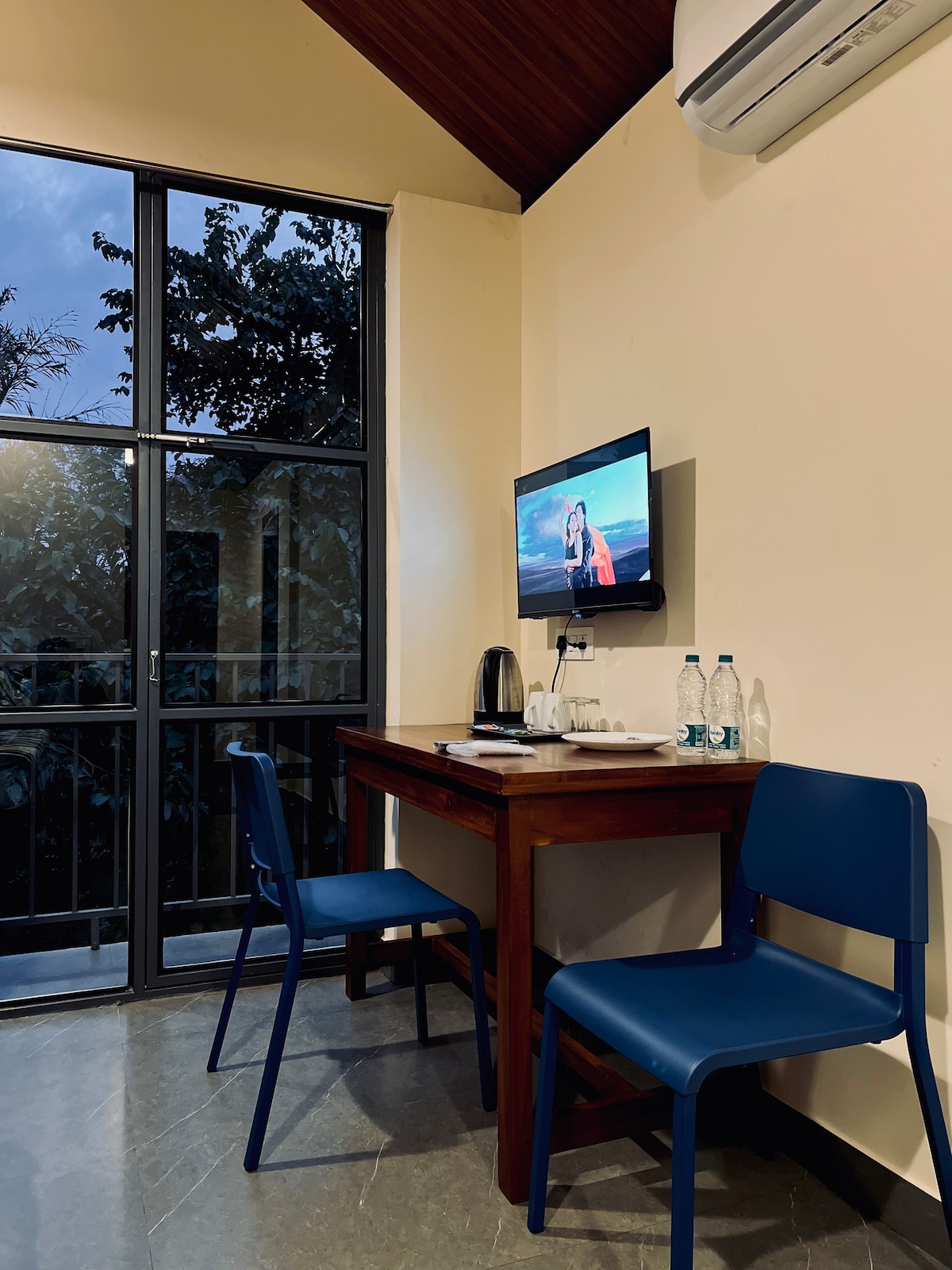 Escape to a peaceful hilltop stay in Pozhuthana, Vythiri, Wayanad, nestled within a serene tea plantation. Misty winds, calm skies, and complete privacy await, where stillness truly finds you. -> Entire property exclusively yours -> 360° views of hills, trees & plantations -> Cozy interiors with a bathtub facing nature -> Private dining, kitchen & outdoor seating -> Perfect for slowing down and reconnecting Ideal for couples or anyone craving quiet, beauty, and uninterrupted time in nature.