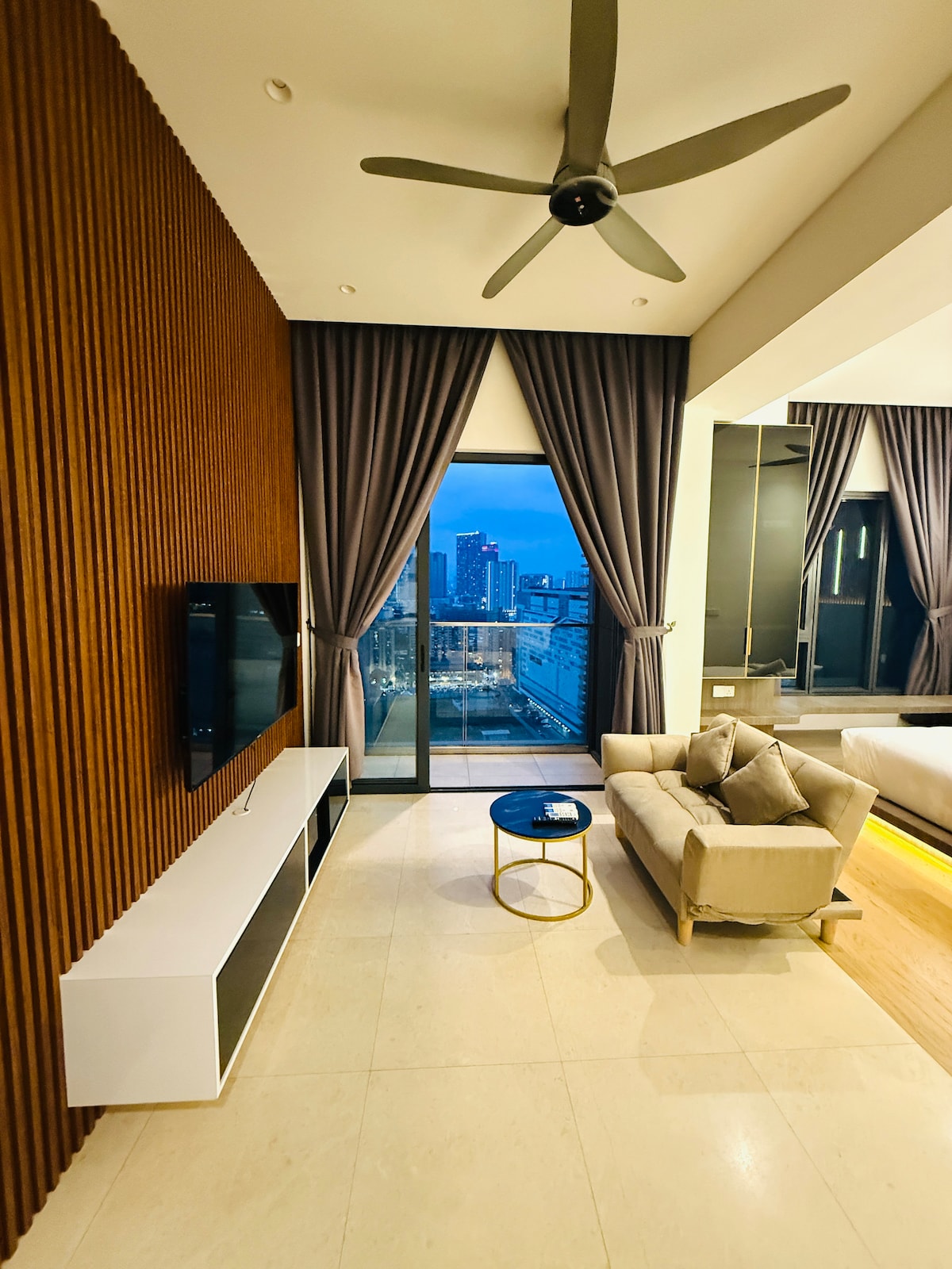 This 1 Br apartment comes with a breathtaking view of KL skyline. It has a 3-seaters sofa living room, dining table, kitchen, desk and a big balcony facing the KL Tower & Petronas Twin Towers. It comes with a 55” TV, Hi-Speed WIFI and a Queen size bed that can fit you comfortably. *The other unit of this Dual Key apartment is a compact Studio with Queen size bed, pantry, washroom & bath. It can fit in friends who travel with you with privacy. Welcome to ask for more details!