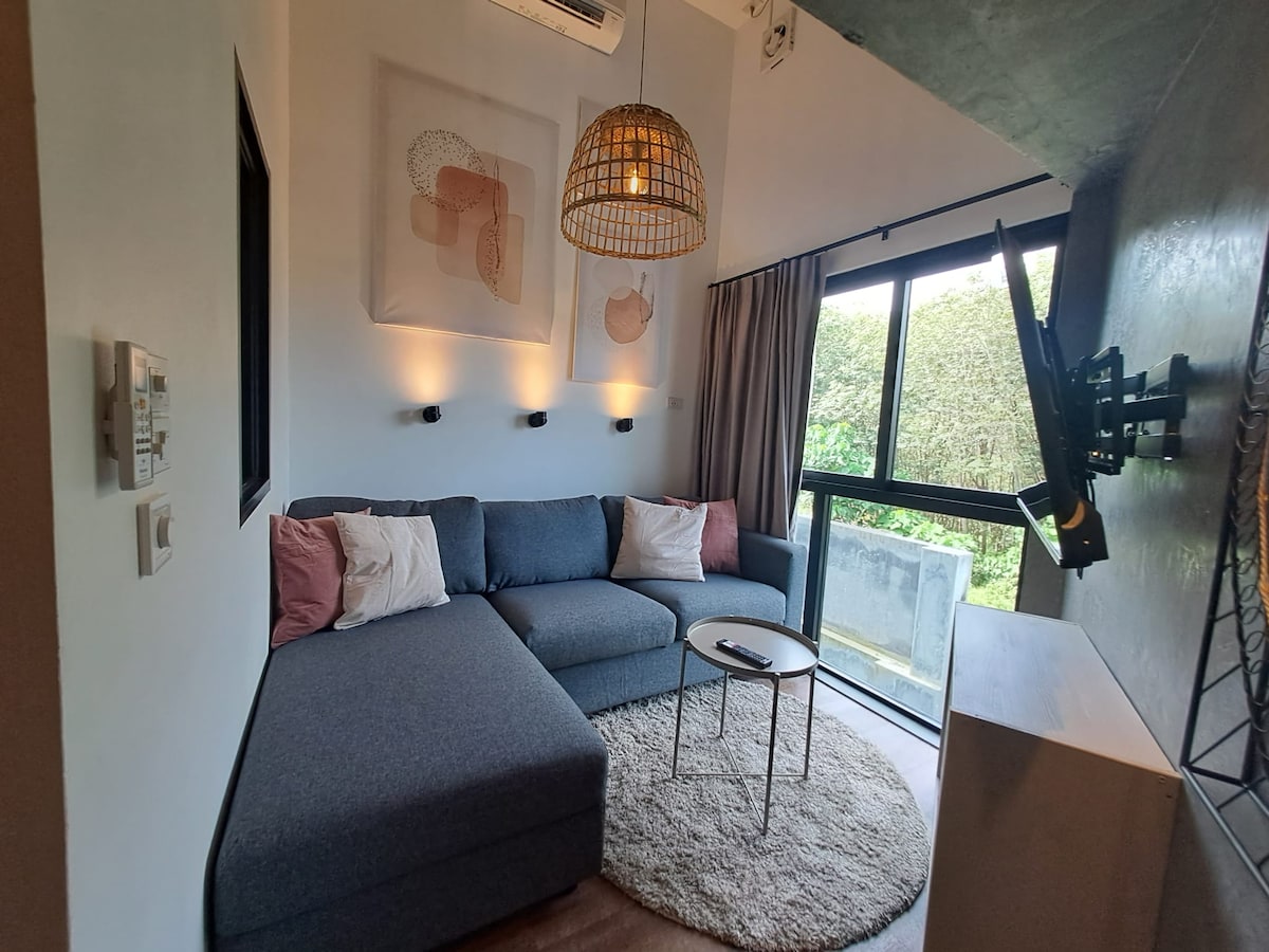 自然のプール、ヤシの木、たくさんの果物と緑がある景色の中、丘の上にある大きな窓のあるモダンなワンルームハウスを提供しています。 クラビ市の中心部やアオナンのビーチから車ですぐの場所にありながら、エアコンやWi-Fiなどのすべての便利さを備えた現代の生活から逃れる場所を探している人に最適な宿泊先です。