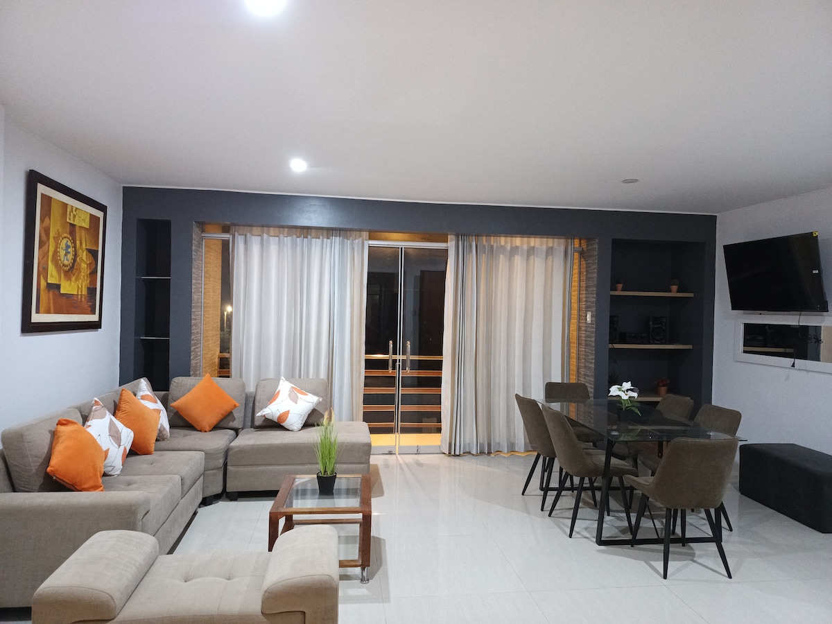 このスタイリッシュな宿泊施設は、グループ旅行に最適です。空港から10分、レアルプラザショッピングセンターから10分、ペルーの彫刻60点が並ぶヨルトゥケ通りの隣に位置するアパートは、ラ・ビクトリアの最も美しいエリアの一つに位置しています。また、5分以内にレストランや薬局もあります。 24時間無料WI-FIインターネット接続。このアパートはエレガントで広々としていて、とても居心地が良いです。