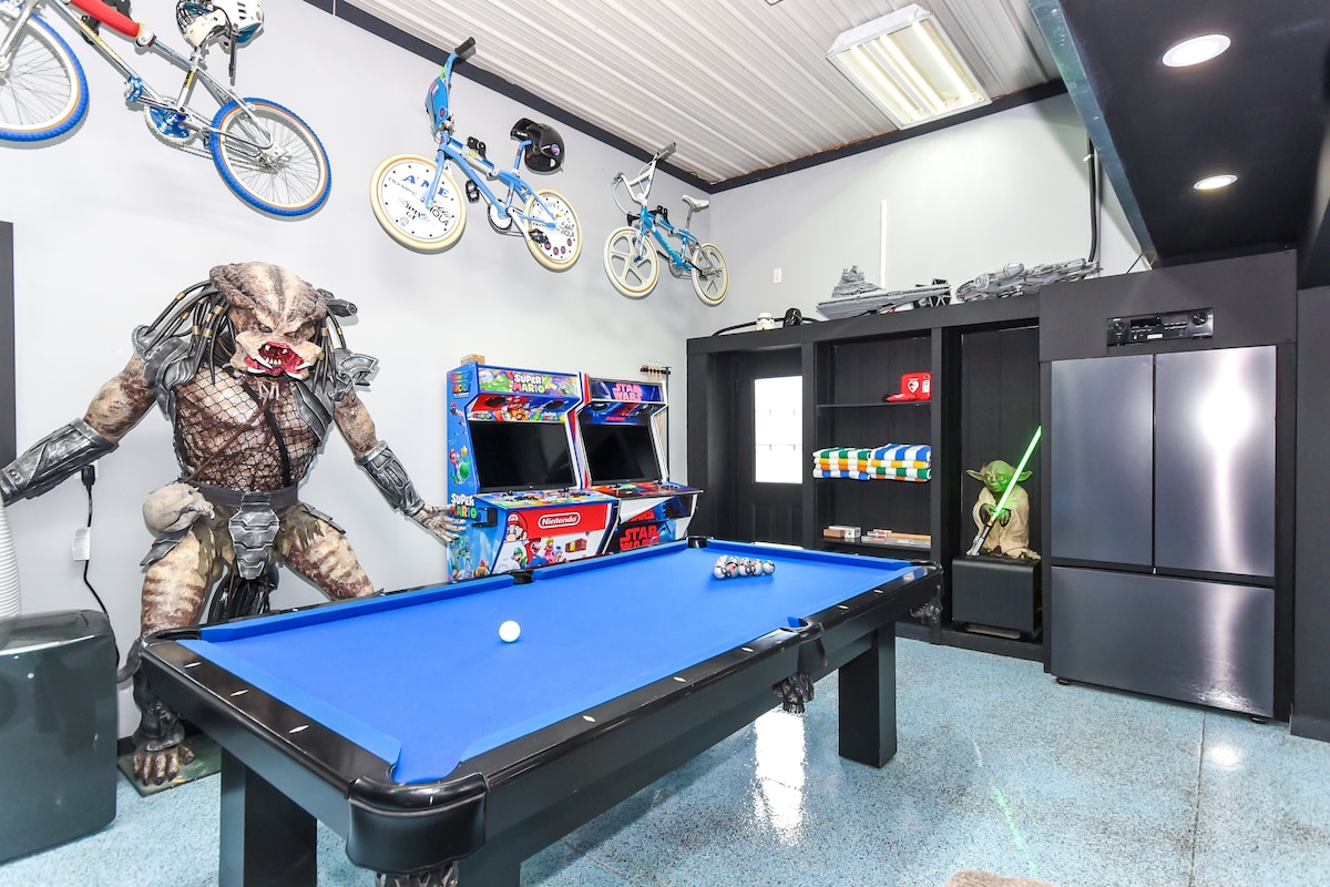 究極のゲーマー向けの隠れ家、ゲームセン、プール、ジャグジー