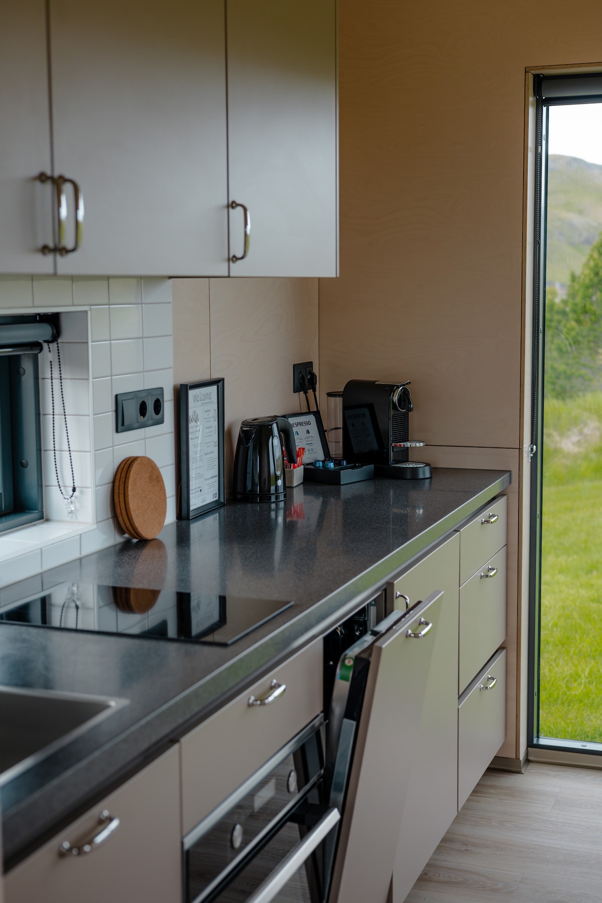 快適でミニマリストな36平方メートルのミニヴィラは、最大2名様(13歳以下のお子様を含む)まで宿泊可能で、フィアザルアールグリュフルからわずか2キロです。ミニヴィラからは、山々と苔の生えた溶岩地帯の絶景を一望できます。寝室、シャワー付きのモダンなバスルーム、オーブン/電子レンジ、食器洗い機、冷蔵庫を備えた設備の整ったキッチンがあります。 穏やかなアイスランドの景色を眺めながら、Nespresso Citizで淹れたモーニングコーヒーをお楽しみください。