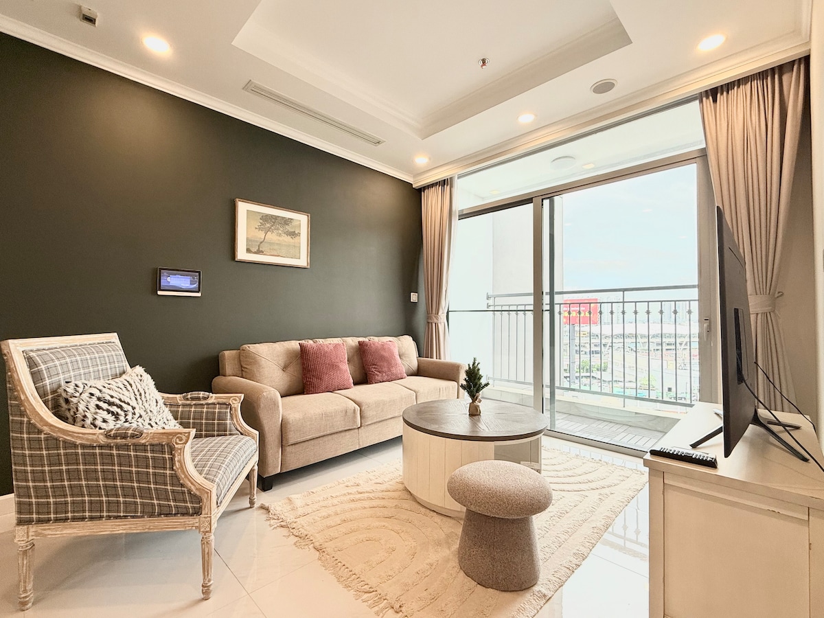 中心部に位置するこの宿泊先で、スタイリッシュな体験をお楽しみください。 こちらはLandmark Plusビル内の1寝室のアパートです。わずか数歩で、商業センター、子供用プレイエリア、レストラン、コーヒー、ショッピングを備えた究極のランドマーク81ビルに行くことができます。ジムとプールは完全に無料です。