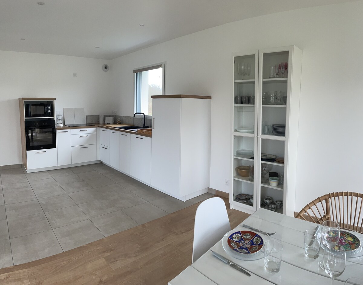 ラ・ペルル・マリーヌは、2024年に建てられた広々とした明るい一階建ての新築住宅で、 広い庭に面した南向きの新築の一戸建てです。 内部には、設備の整ったキッチン、リビングルーム、バスルーム、 バスルーム、ランドリールーム、洗面台付きの独立したトイレ。 160/200cmのベッド1台がある寝室1室。 2つ目の寝室には140/190cmのベッド1台があります。 2つのシングルベッド(90/190)がある第3の寝室。 外には、テラス、ラウンジ、デッキチェアがあります。
