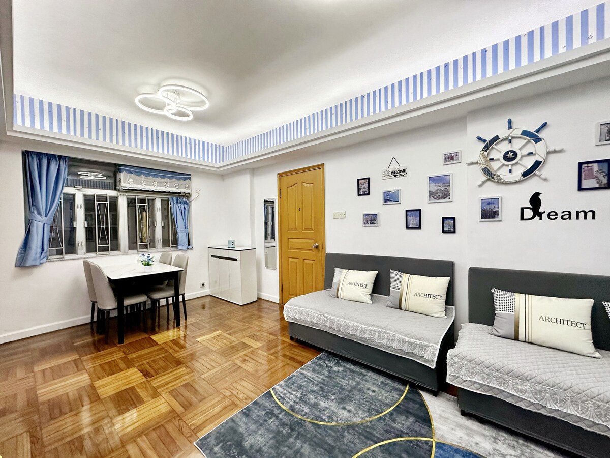 クイーンベッド、MTRの隣にある4部屋の広々としたアパート、14名様用、2バスルーム