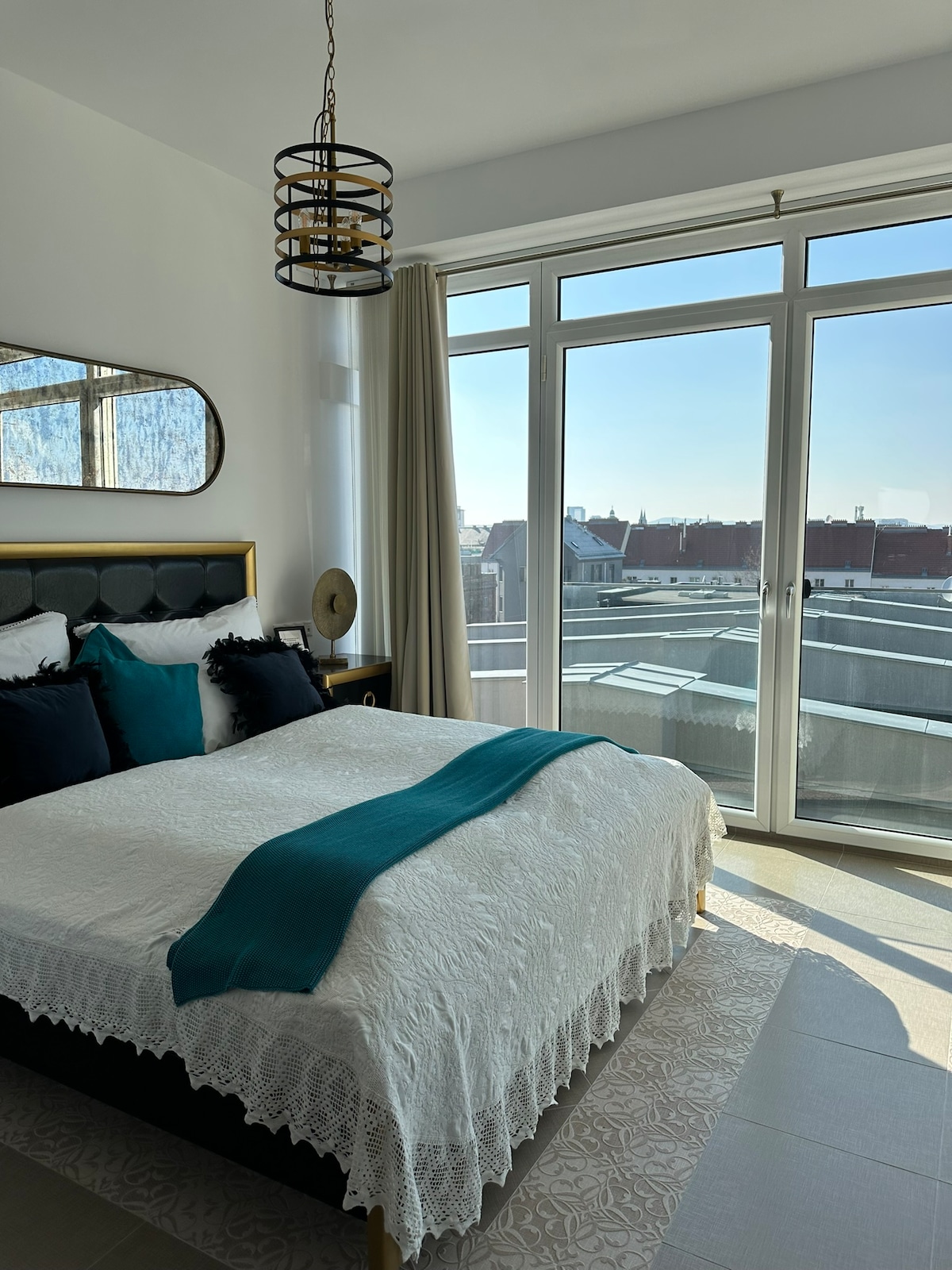 Willkommen im stilvollen Penthouse, ideal für Familien oder Gruppenreisen. Diese moderne Wohnung ist lichtdurchflutet, geräumig und mit viel Liebe zum Detail eingerichtet. Von den gemütlichen Schlafzimmern über die voll ausgestattete Küche bis hin zum einladenden Wohnzimmer - alles wurde sorgfältig gestaltet, um unseren Gäste ein unvergessliches Erlebnis in Wien zu bieten. Ein besonderes Highlight ist der kostenfreie Parkplatz in der Tiefgarage. Hier könnt ihr das pure Urlaubsgefühl genießen.