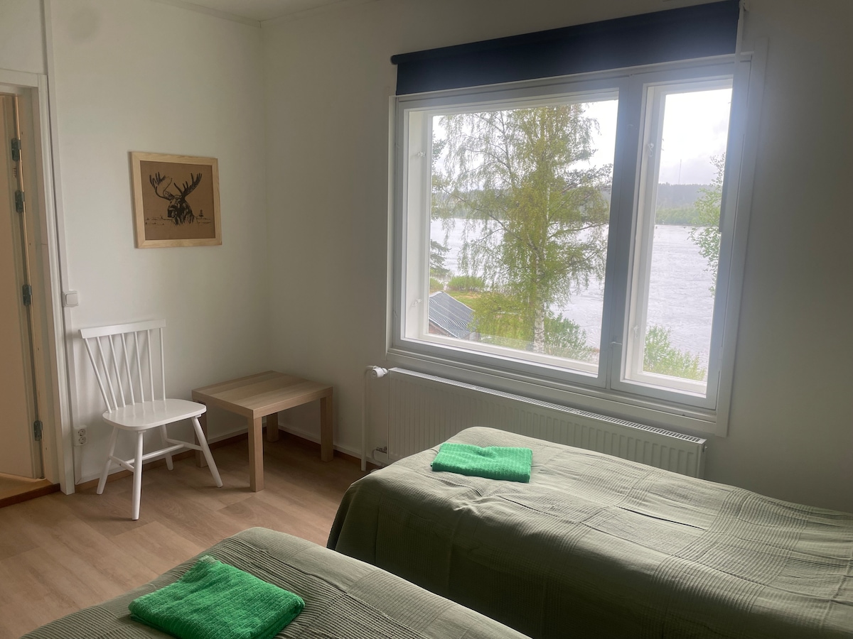 快適なモーテルとして改装されたスタイリッシュで雰囲気のある物件。部屋の窓からはトルニオ川の素晴らしい景色が見え、冬には空にオーロラが見えます。客室にはシャワーとトイレがあります。家のキッチンと快適なサウナもご利用いただけます。この宿泊施設には、夏でも冬でも楽しめる広大なレクリエーションエリアがあります。また、近くの森や川へのハイキングもできます。リネンは含まれています。