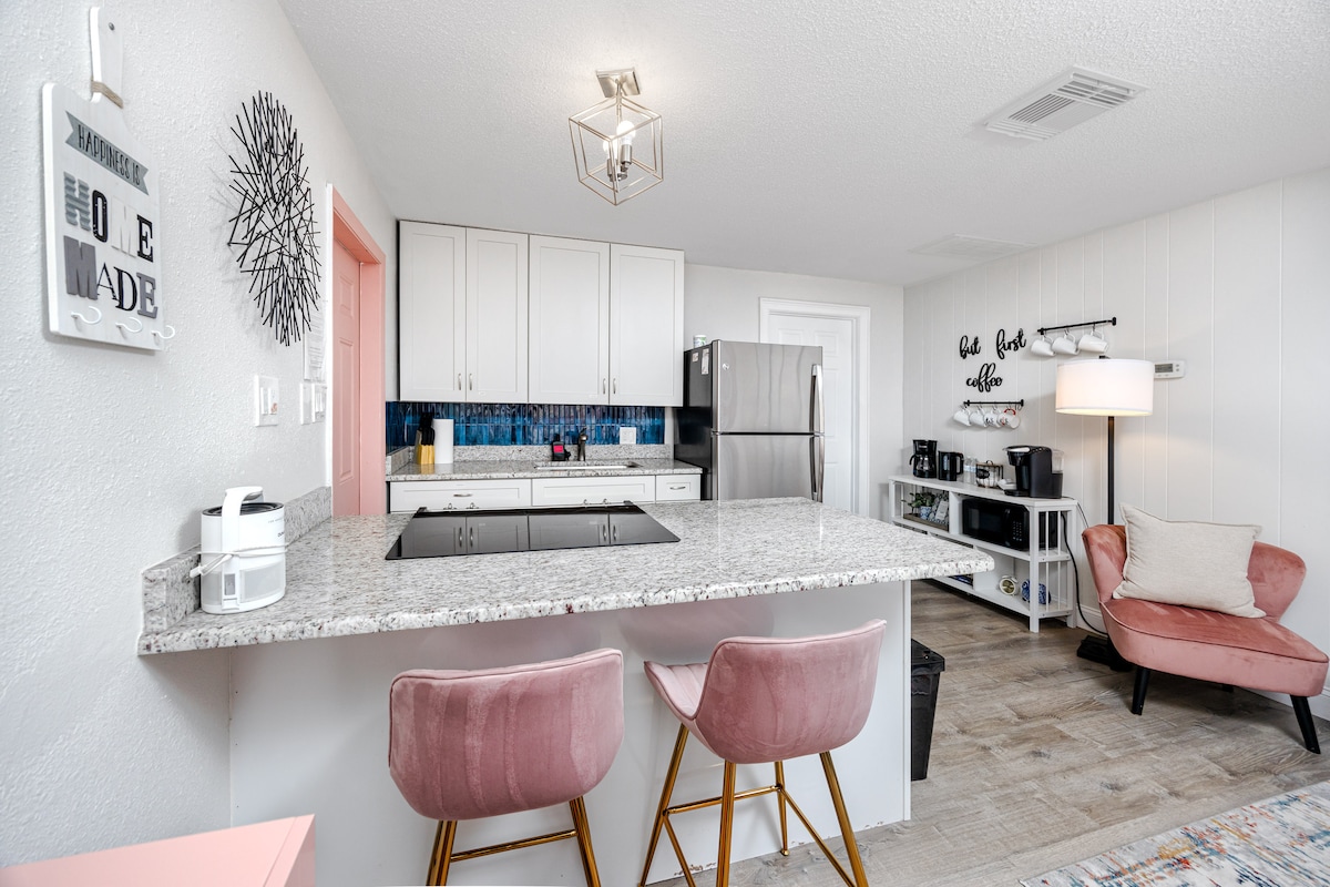 The Tiny Oasisへようこそ!インディアン・ロックスとクリアウォーター・ビーチの近くにある、フロリダ州ラルゴの快適なブティックスタイルの隠れ家。プランジプールのそばでくつろいだり、ブラックストーンを燃やしたり、屋外で映画の夜を楽しんだりできます。ユニークな演出と5つ星の体験が、小さな空間でも大きな思い出を作れることを証明しています!下の「もっと見る」をタップしてください! 楽しみなことは? 👙プランジプール 🚿屋外シャワー 🔴コーンホール ⛱️ ビーチ用品 🍔グリル 🅿️専用駐車場 🍳自宅で料理 🧺専用の洗濯機・乾燥機