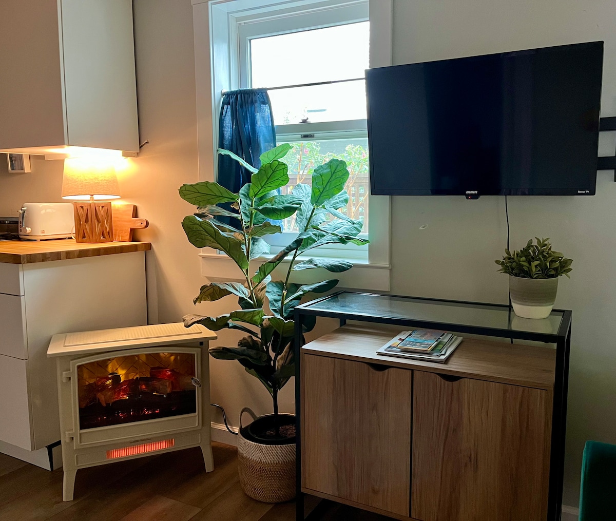 駐車場、フルキッチン、バスルーム付きのスタジオ