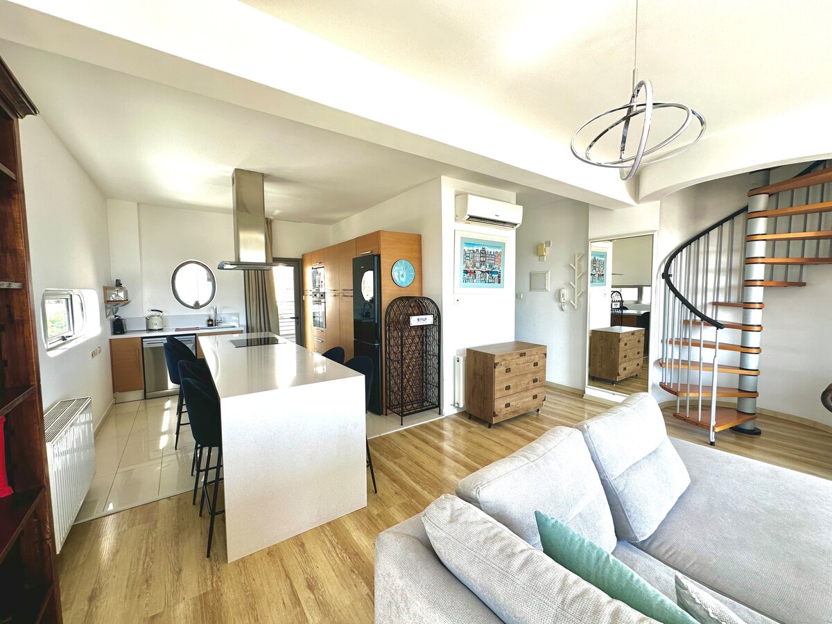 Hard to beat this stunning 3-bedroom loft apartment strategically located just 7 minutes walk from the sea, really close to the beach and promenade but away from the noise and the traffic. Wow factors one after another: the loft is huge with striking high ceilings, design kitchen, three big comfortable bedrooms, two full bathrooms, sunny terraces with sea and palm trees view, an Amazing rooftop communal pool, fast wifi. Ideal place for the perfect holiday and fully equipped for longer stays too