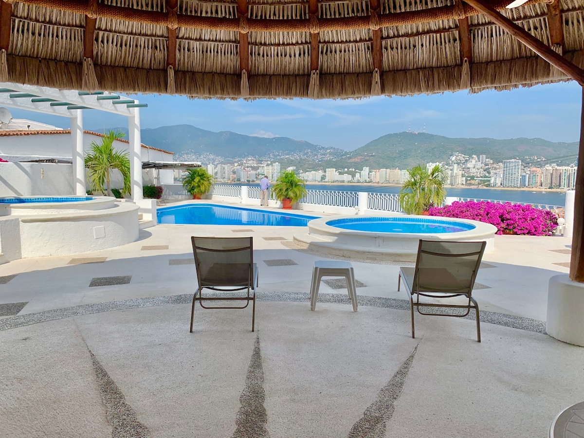 アカプルコ湾の眺めが楽しめるアパート+プール