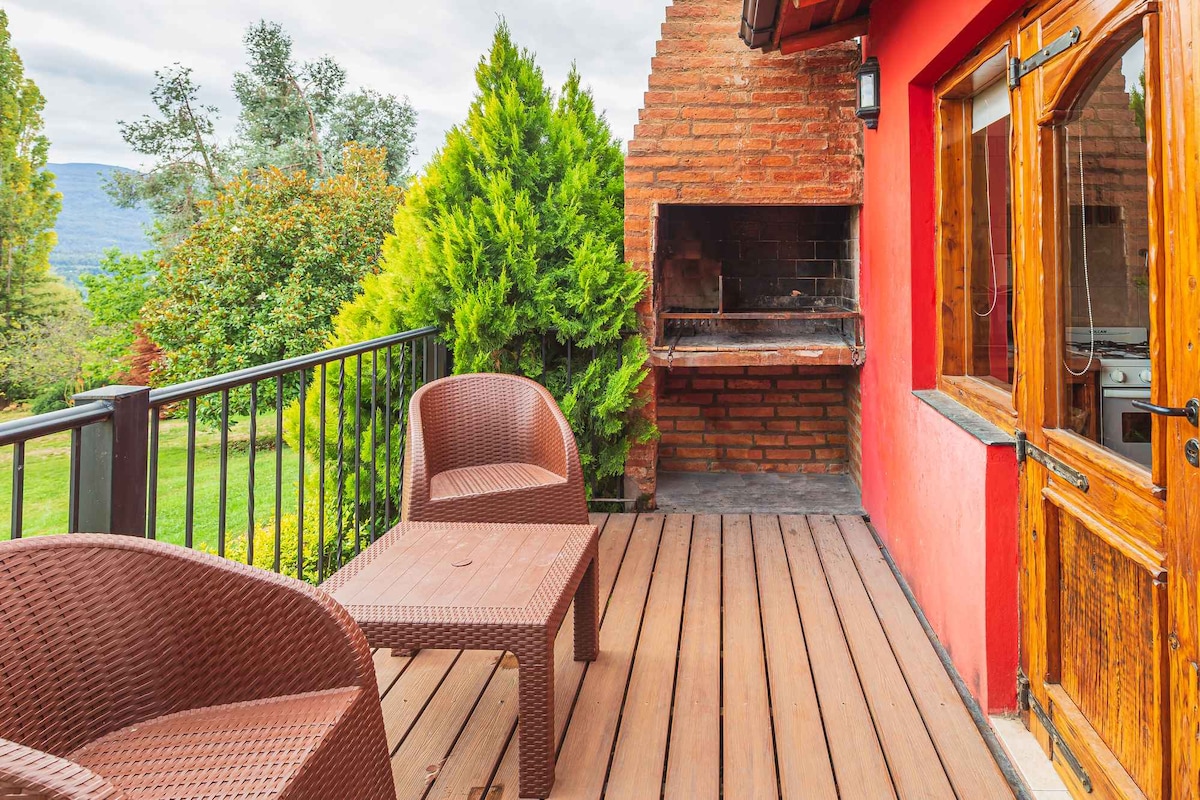 アンデス山脈とピルトリキトロン山の絶景を望む居心地の良いキャビンは、ゴロンドリナスにあり、エル・ボルソンの中心部から車でわずか10分です。献身的に手入れされており、2つの寝室で最大4人まで快適に過ごせます。キッチンも完備されており、広い庭園は静けさと自然を楽しむのに理想的です。敷地内にはインターネットと駐車場があります。