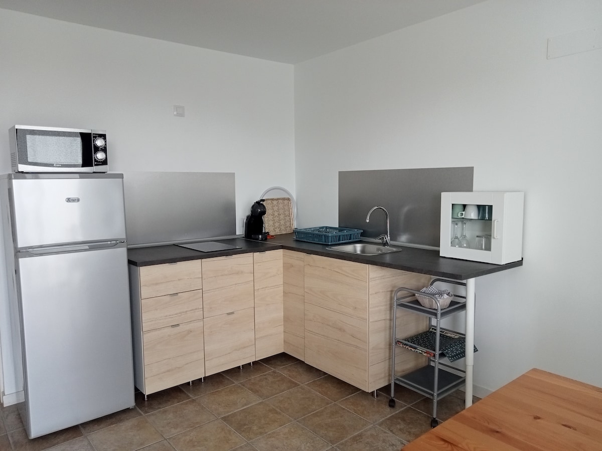 自然光がよく、一日中日当たりが良いです。専用のアクセスとテラス・サンルーム。 キッチンには冷蔵庫、ガスコンロ、電子レンジ、やかん、調理器具、ふきん、石鹸などが備わっています。 トイレには洗面台、シャワー、トイレがあります。休息スペースには、シングルベッド2台とソファベッド1台があります。 ファマラビーチの砂丘は、宿泊施設の入り口から100メートルのところから始まります。「着の身着」で出かけ、ビーチに行くのに理想的です。ウォータースポーツやハイキングなどを楽しめるエリアです。