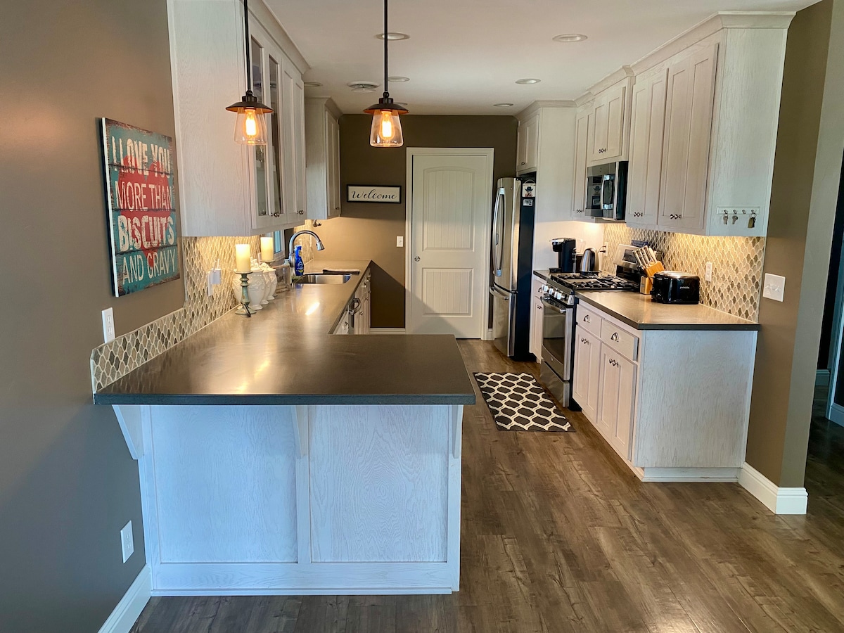 静かな0.5エーカーの敷地に佇むSleepy Hollow Havenは、あなたがずっと夢見ていたキャビンでの休暇です。このミッドセンチュリー・モダンスタイルの素敵な宿泊施設は、温かみのある個性的な魅力を備えており、その魅力に惹かれずにはいられません。寝室2室、バスルーム2室、広さ1,350平方フィート(約125平方メートル)のこの宿泊施設は、到着した瞬間から自宅のようにくつろげます。町から2分の距離にありながら、心からリラックスできる人里離れた場所に位置しており、利便性と静寂の完璧なバランスを実現しています。車で30分以内の場所にはさまざまなアクティビティがあり、お帰りになったらジャグジーが待っています。