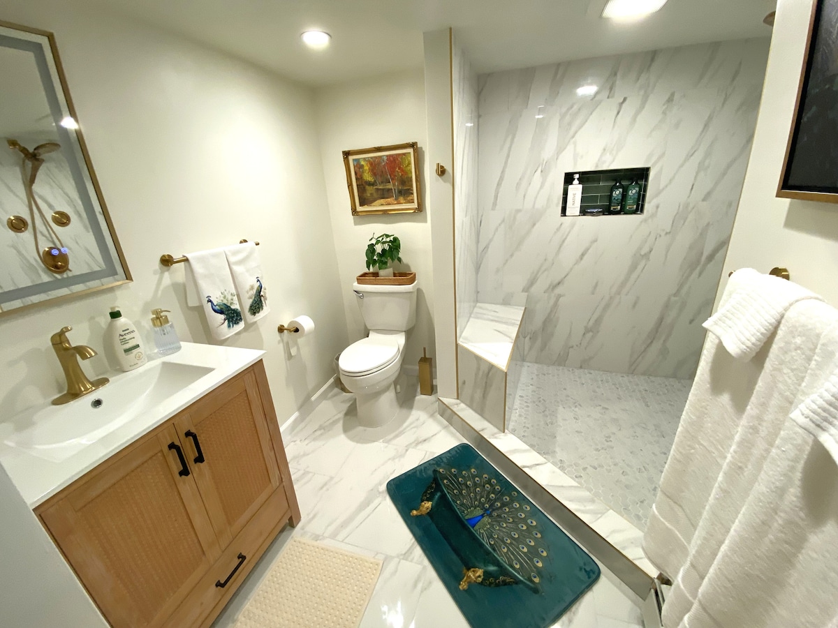 専用玄関と洗濯機を備えたプライベートスイート。ピッツバーグでの短期滞在に最適です。 お部屋のハイライトは、スパ風の新しいバスルームです。このバスルームには、特大のレインヘッド、ハンドヘルドシャワー、デュアルボディジェットを備えたウォークインシャワーがあり、エレガントなブラッシュゴールドの設備で仕上げられており、真の高級感を感じさせます。 ダウンタウンからわずか15分の、静かで安全なエリアをお楽しみください。専用駐車場(2台分)に加えて、軽食用の必需品(ミニ冷蔵庫、電子レンジ、コーヒーメーカー)が備わっています。